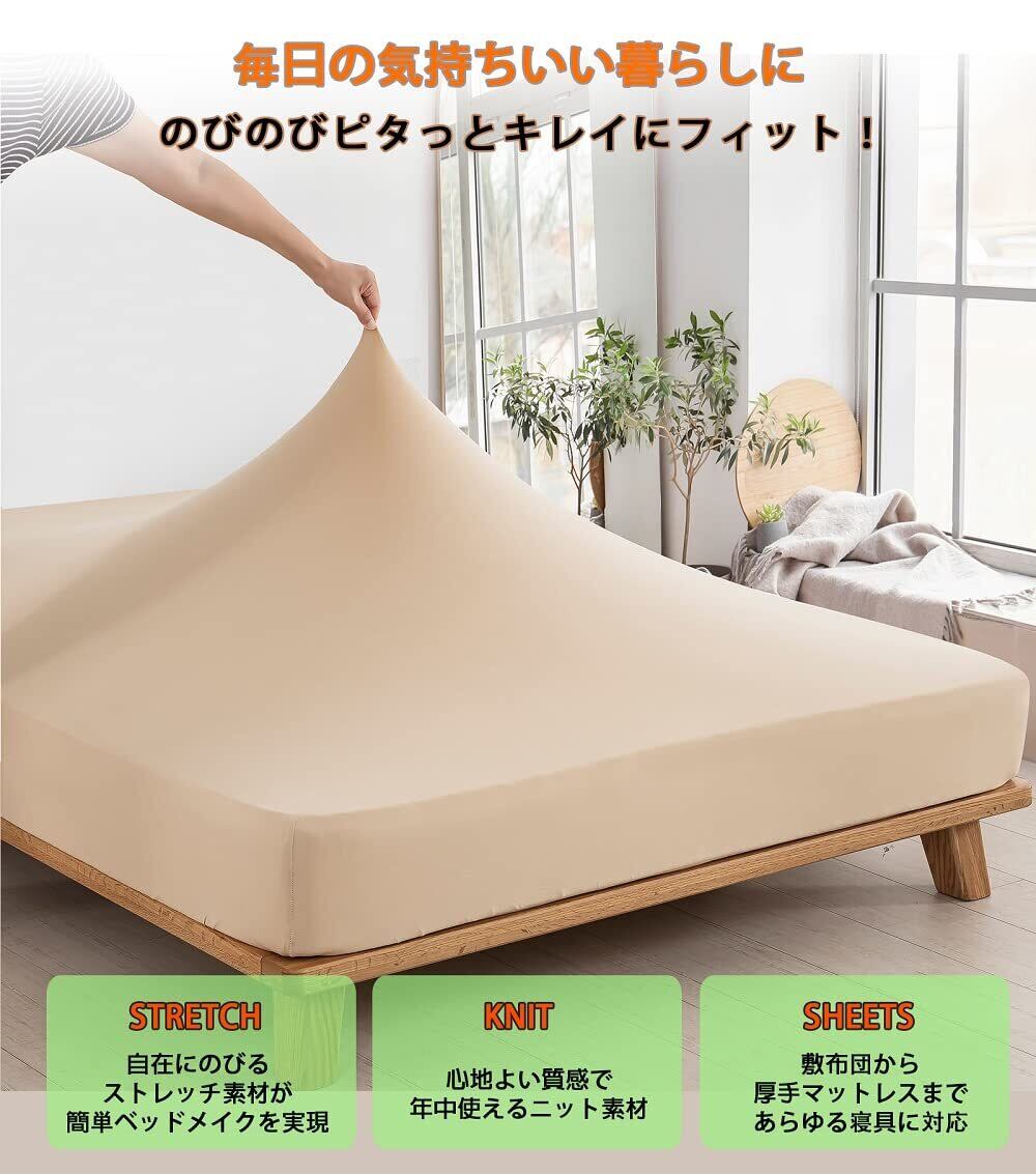 のびのびシーツ スモールシングル ショート ロング兼用 ストレッチシーツ セミシングル ボックスシーツ やわらかニット フィットシーツ 伸びる ベッドシーツ 伸縮 薄型 厚型 マットレスカバー ベッドカバー 敷ふとんシーツ 無地 オールシーズン ベージュ