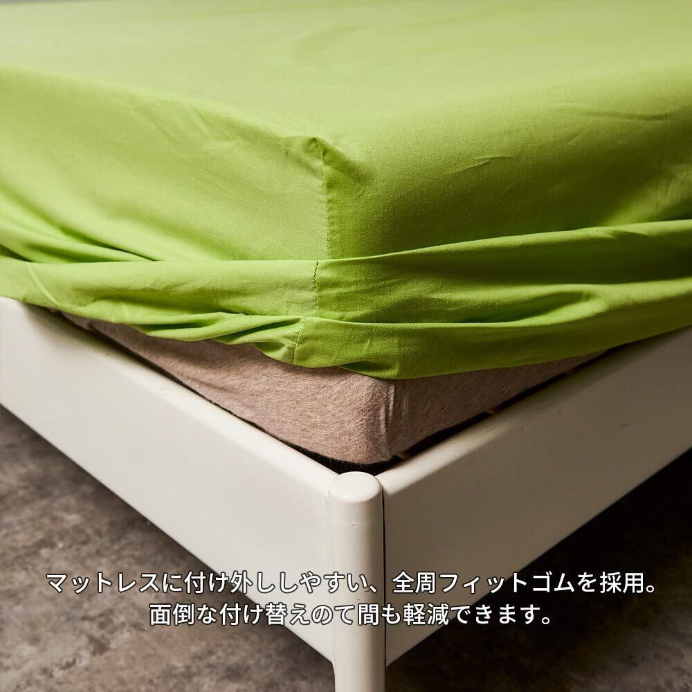 ボックスシーツ シングル マチ35cm グリーン ベッドシーツ 綿100 マットレスカバー 全周ゴム 着脱簡単 BOXシーツ コットン 肌触り 洗える 抗菌防臭 防ダニ