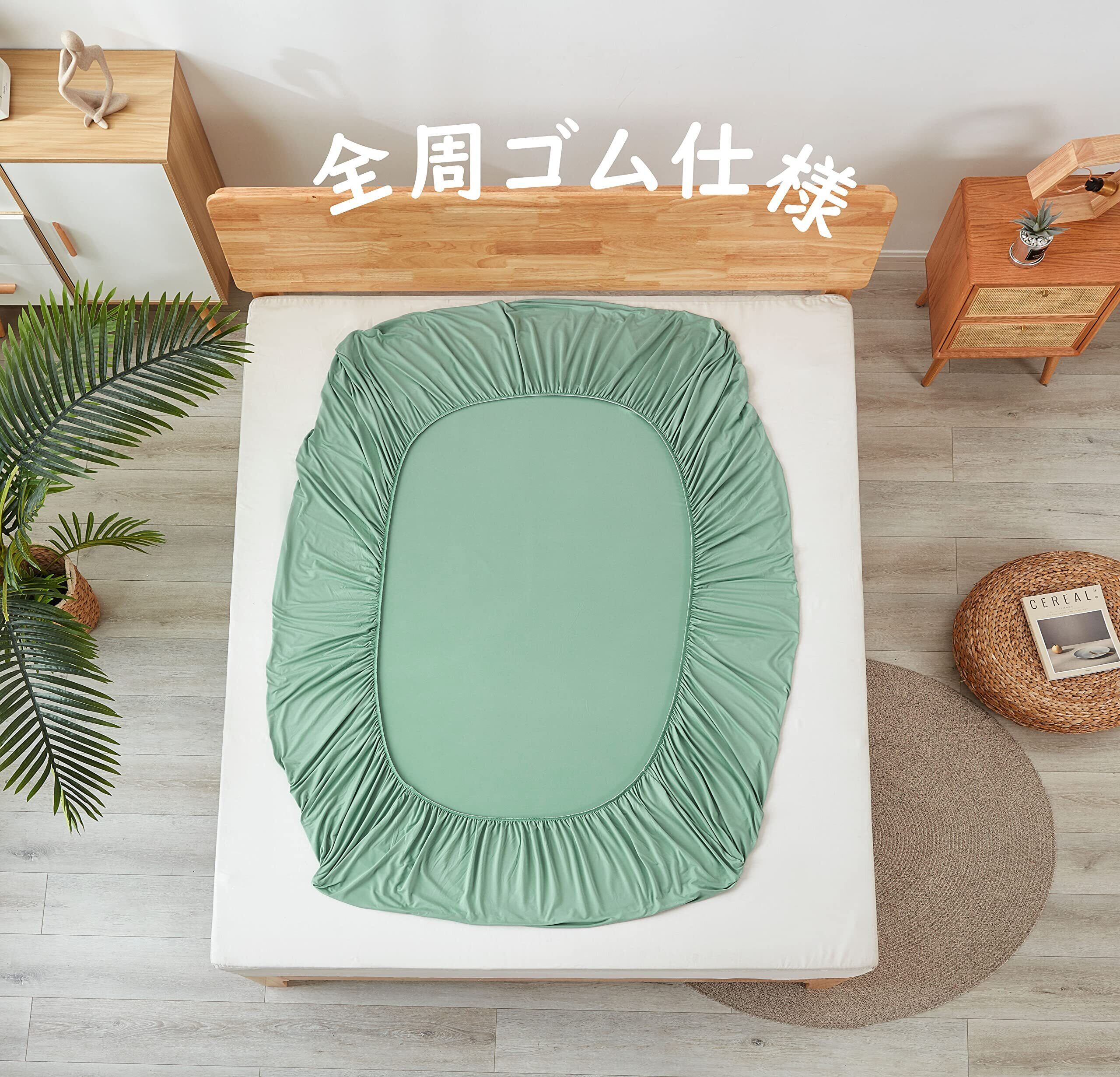 MISOLER ボックスシーツ ベッドシーツ 毛玉なし ベッドカバー マットレス・敷ふとん兼用 のびのびぴったり 通気性 夏・冬オールシーズン吸水速乾 しわにならない 着脱簡単 抗菌防臭 (シングル~セミダブル用・100~120cm×180~210cm ライト グリーン)