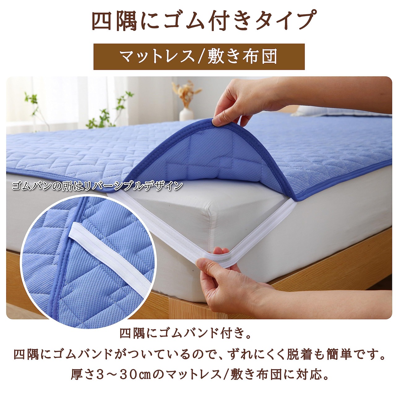 【四隅にゴムバンド付き】四隅に強化ゴムバンドが付いているので、敷きパッド を布団にしっかり固定できます。取り付けも簡単、家事の負担も軽減してくれます。