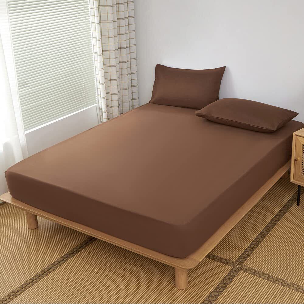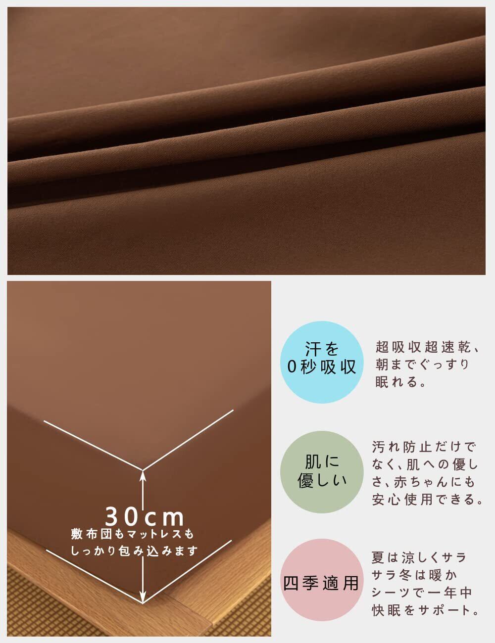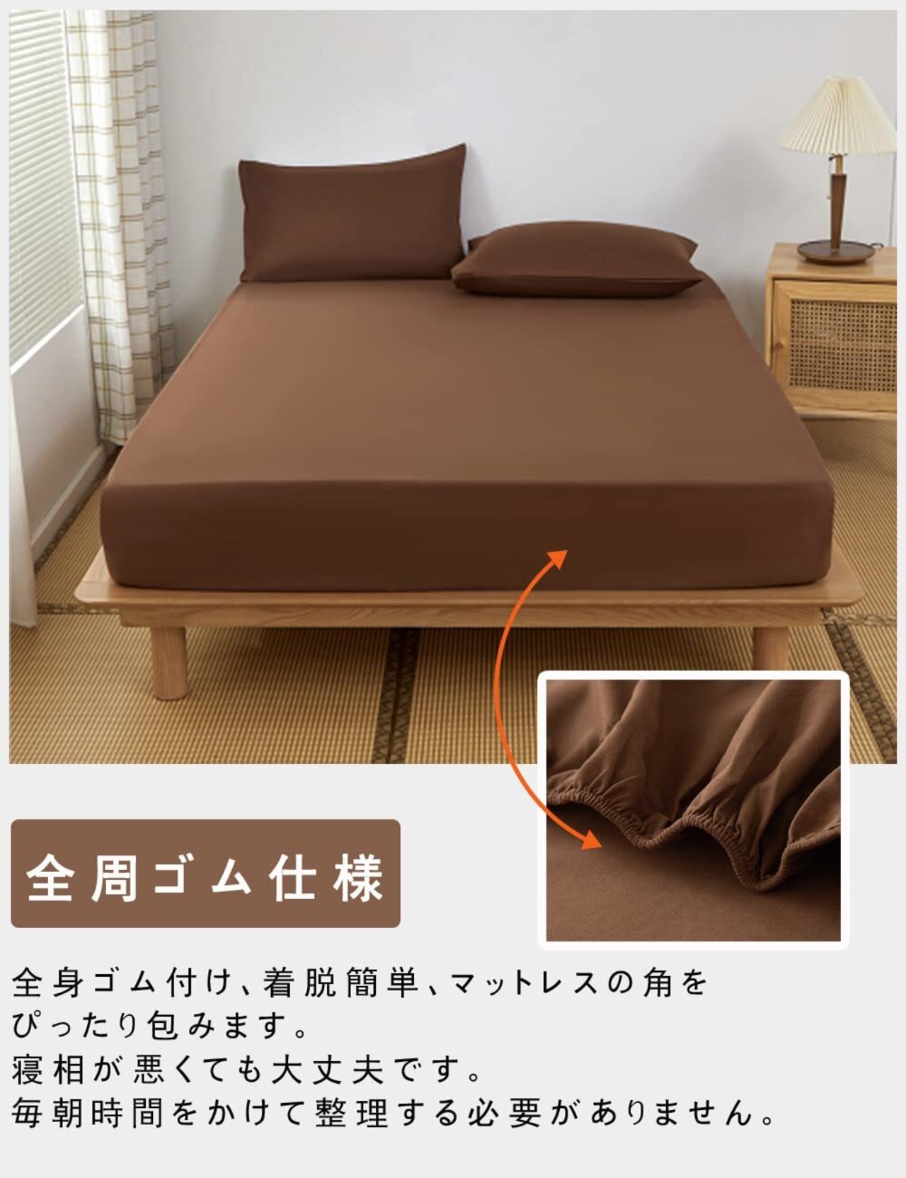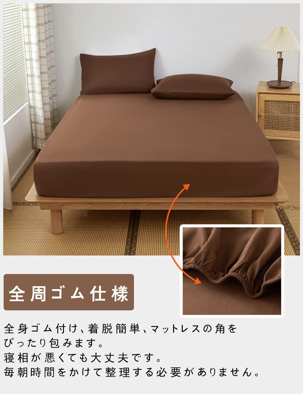 ボックスシーツ 吸水速乾 マットレスカバー ベッドシーツ シーツ ベッドカバー 柔らかな触感 吸汗 マチ部分約30cm 着脱簡単 通気性 丸洗い可能 快眠 (ブラウン, キング・180X200X30cm)