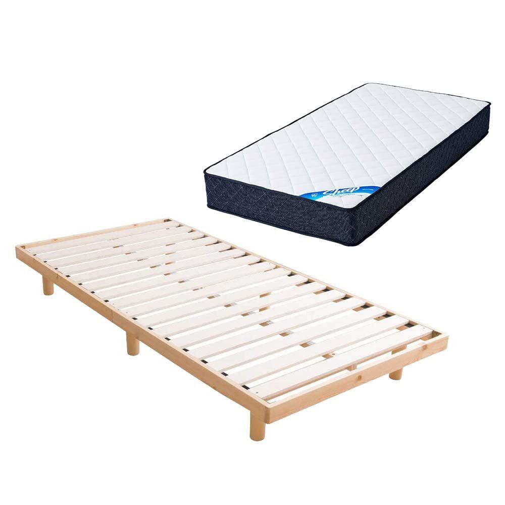 【すのこベッド+マットレスセット】アイリスプラザ ベッド すのこ シングル 天然木 2段階高さ調整 耐荷重約200kg ナチュラル 幅約98×長さ約200cm×高さ約6.5~23.5㎝ + アイリスオーヤマ マットレス Sheep ポケットコイル 極厚21cm かため コイル528個 圧縮梱包 シングル PMTS21H-S ホワイト 【アイリスオーヤマ 新生活 2023】