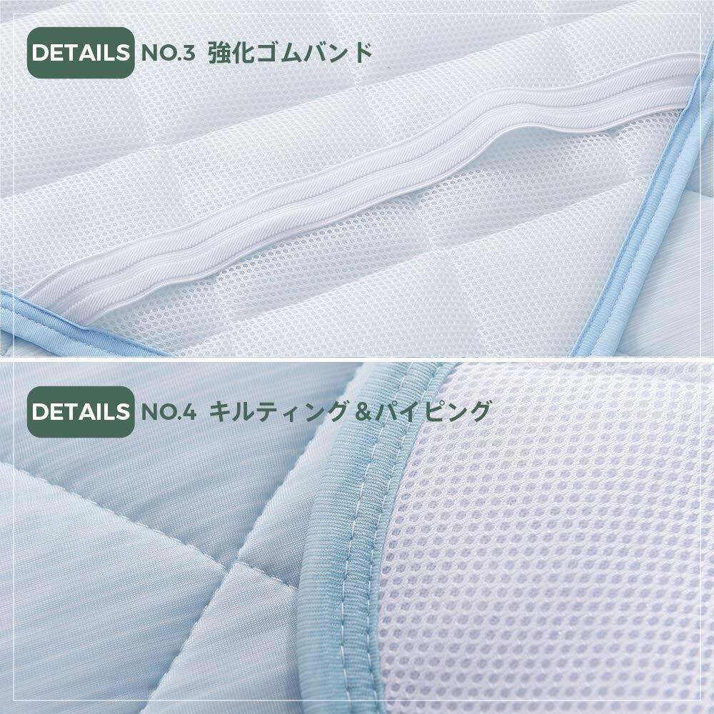 「Cooling Micax Fiber」ひんやり繊維 & 速乾中綿充填 & エアーメッシュ、豪華な三層構造で、普通より厚くて、柔らかさと反発性を兼ね備えた新モデルのひんやり敷きパッドです!