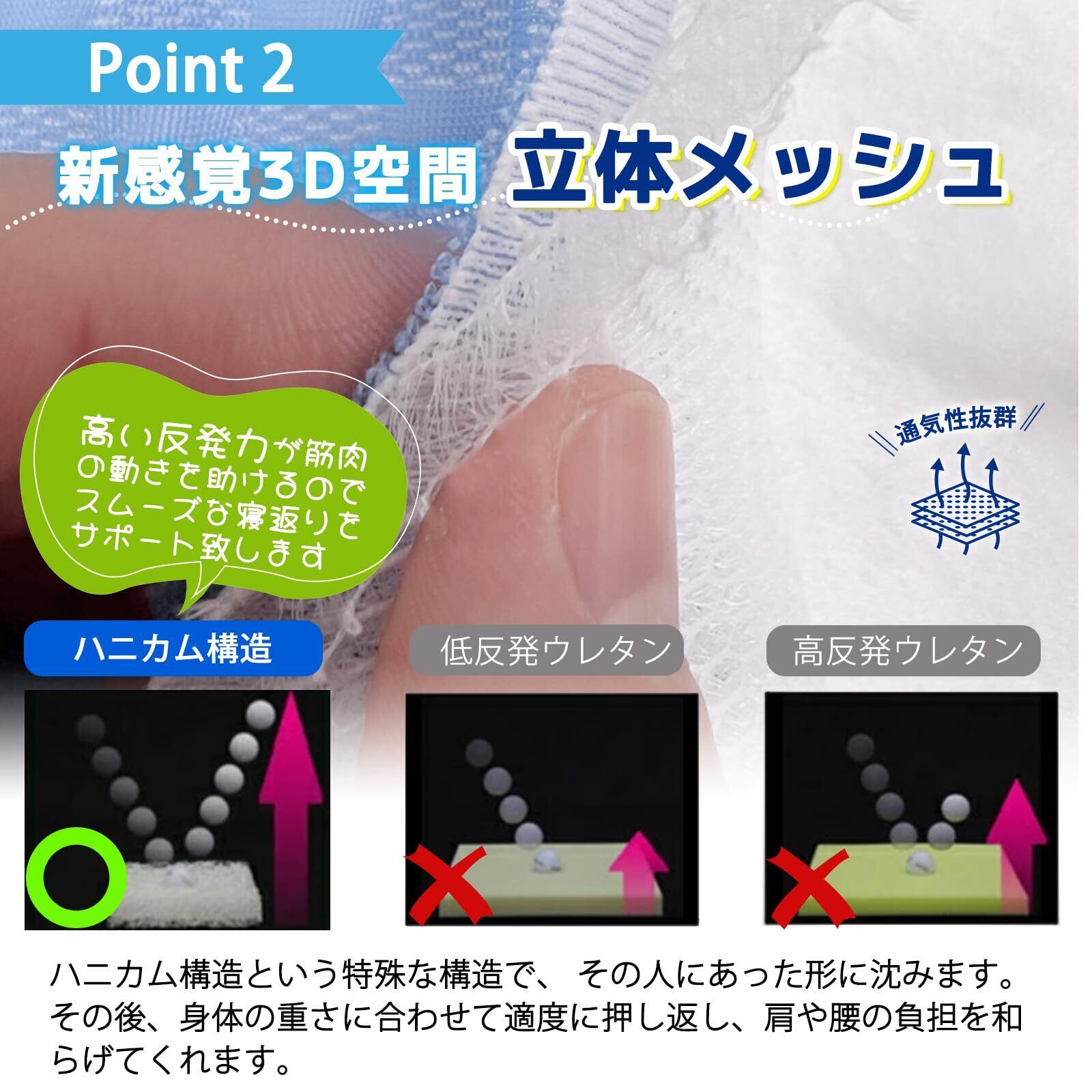 【体圧分散Point① 通気性抜群】中材は特別開発ハニカム:高密度ファイバーを使用し、マットレスとしての立体土台を作成し、通気性の向上と、発散弾力性を保って体を支え、体圧を分散され、ずっと快適にお使いいただけます。