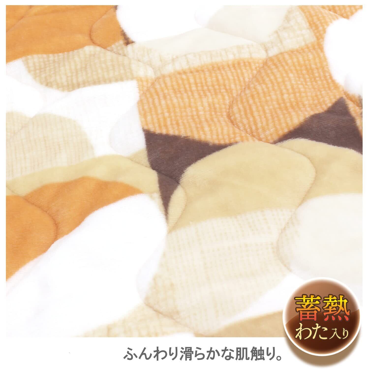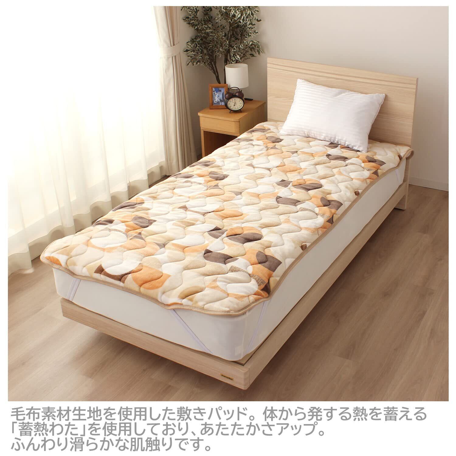 毛布素材生地を使用した敷きパッド。 体から発する熱を蓄える蓄熱わたを使用しており、あたたかさアップ。