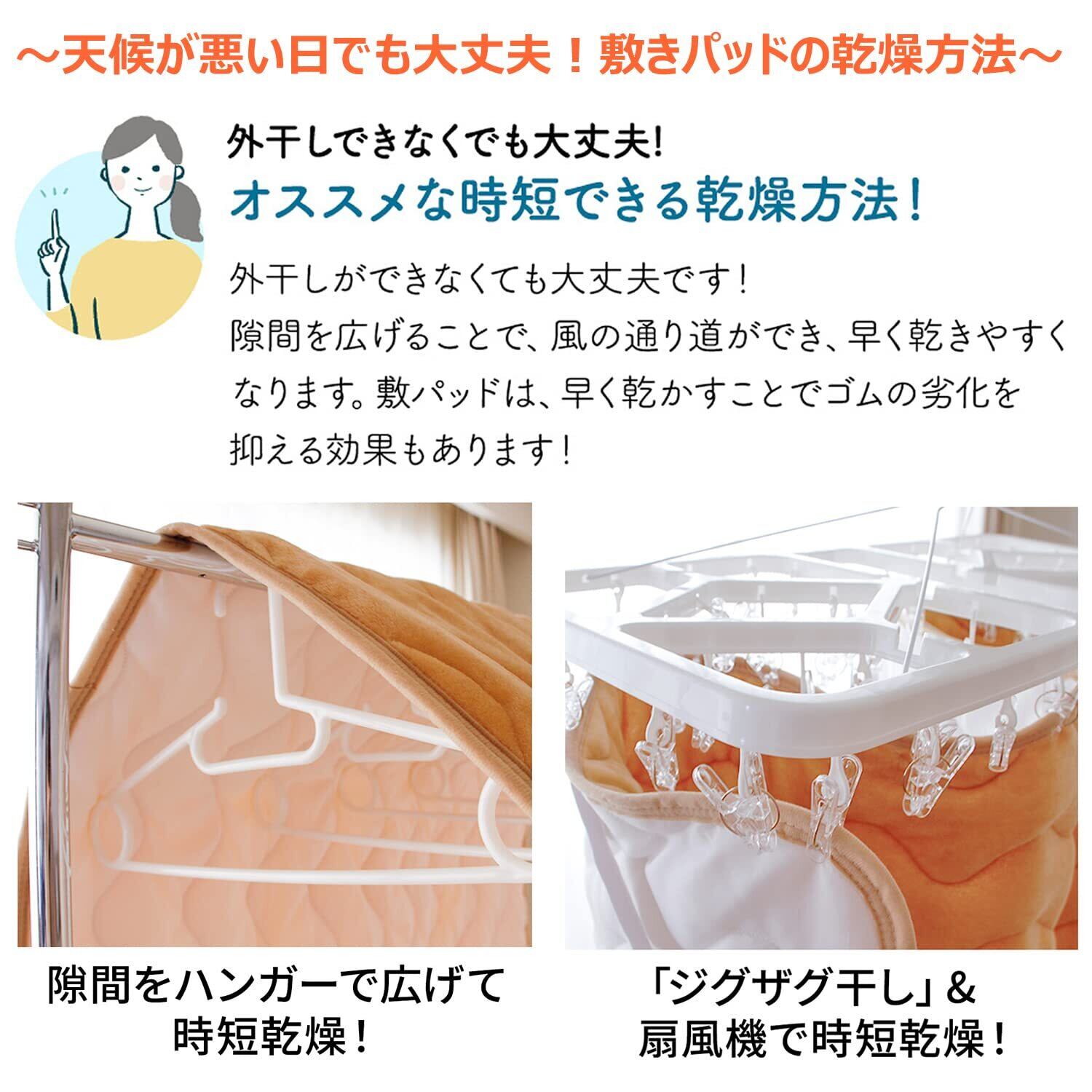 裏面には四隅ゴム付、ズレにくくなっています。敷パッドは厚さ20cmまでのマットレス、敷ふとんどちらでも使用可能。シングル・シングルロングサイズ兼用タイプ。中わたには回収した原料を溶かしてポリエステル繊維として再生した「リサイクルわた」を50%使用。環境にも配慮した中わたを使用しています。