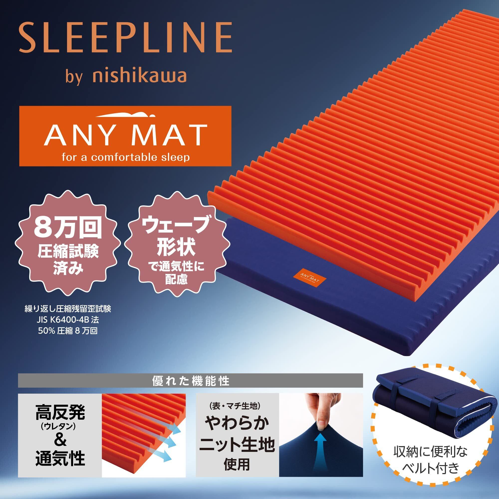 nishikawa【西川】 エニーマット マットレス ダブル 高反発 ウェーブ構造 通気性 ベッドでも床でも使用OK 洗濯可能な側生地 折りたたみ 収納用固定ベルト付き 敷布団 スリープラインby nishikawa ブルー JC22009414