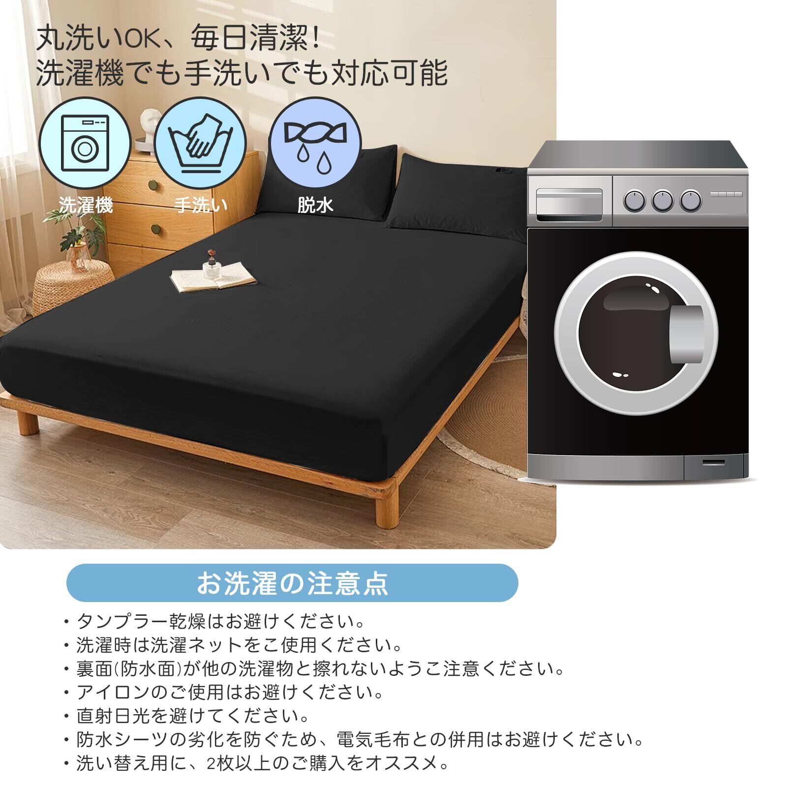 【丸洗い可能&多色展開!】ご自宅で気軽にお洗濯できるため、いつも清潔・衛生的にご使用いただけます。洗濯機での洗い/脱水が可能なので、お手入れの手間を省けます。また、水洗いに強い、何回洗濯しても色褪せの心配もなし。多色選択から、季節を問わず、お部屋にさわやかな雰囲気を作り出すことができる防水シーツです!季節や気分に合わせて、自由に切り替えることができます。