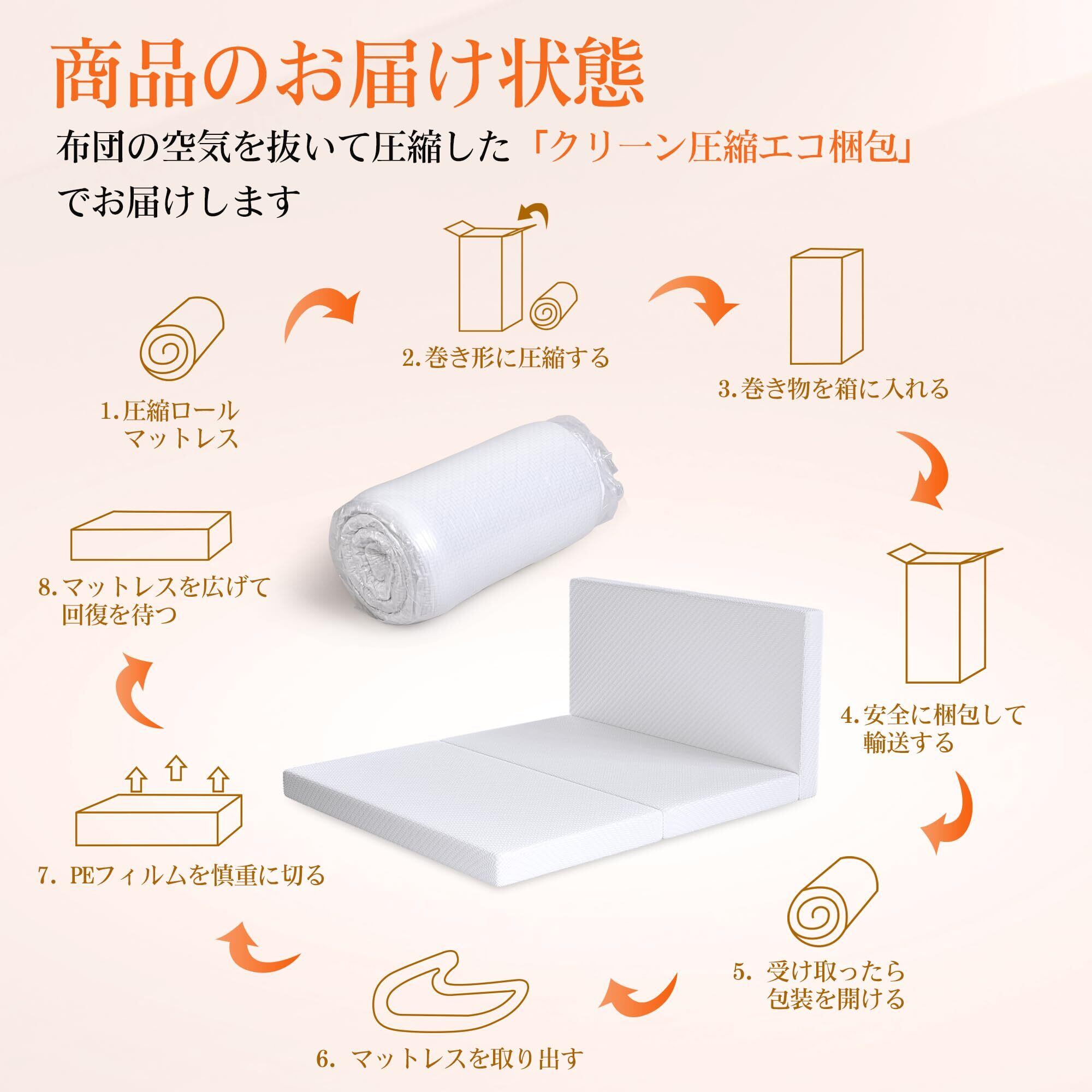 【収納便利×幅広い用途】軽量で持ち運び便利、収納スペースが小さい、薄型の三つ折りマットレスは、リビングルーム、オフィス、ホテルなど、さまざまな場所で使用できます。軽量性により、いつでもどこでも利用できます。収納も楽々!