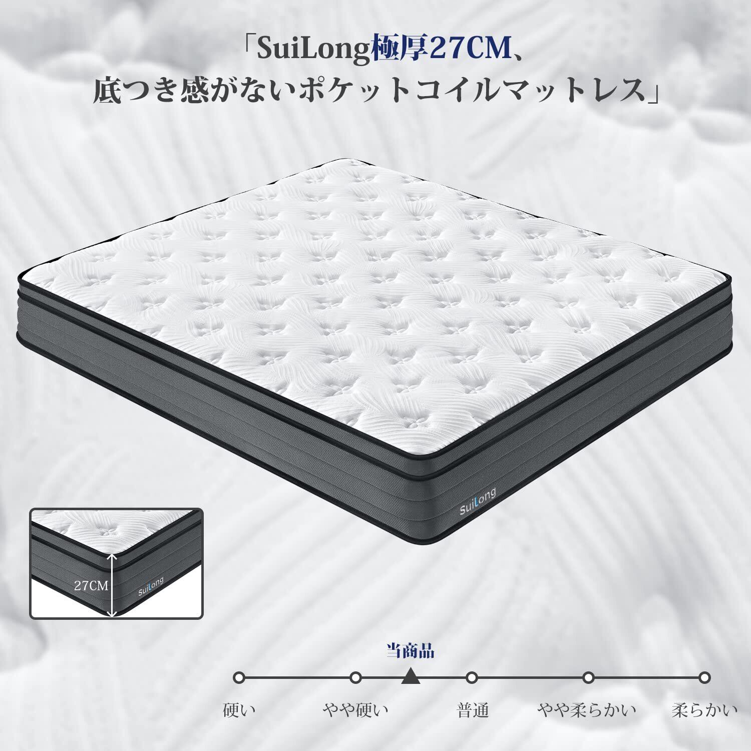 SuiLong マットレス シングル 厚さ27cm 高反発マットレス 極厚 高級ニット生地 通気性 ベッドマットレス ポケットコイル 並行配列 高密度ウレタン 底付き感無し 圧縮梱包 持ち運び便利(97×195×27)