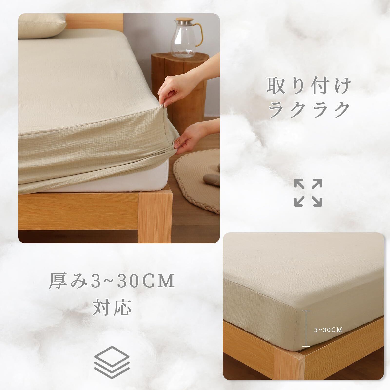 【簡単装着でストレスフリー】シーツ裏に全周ズレ防止ゴムを配備し、簡単に着脱可能です。マットレスの角をしっかりと包み込み、洋式ベッドマットレスだけでなく、和式の敷き布団にも完璧にフィットします。繰り返しの寝返りにもずれる心配がなく、快適な使用感を提供します。一人暮らしの女性やお手入れが面倒な方にもおすすめです。