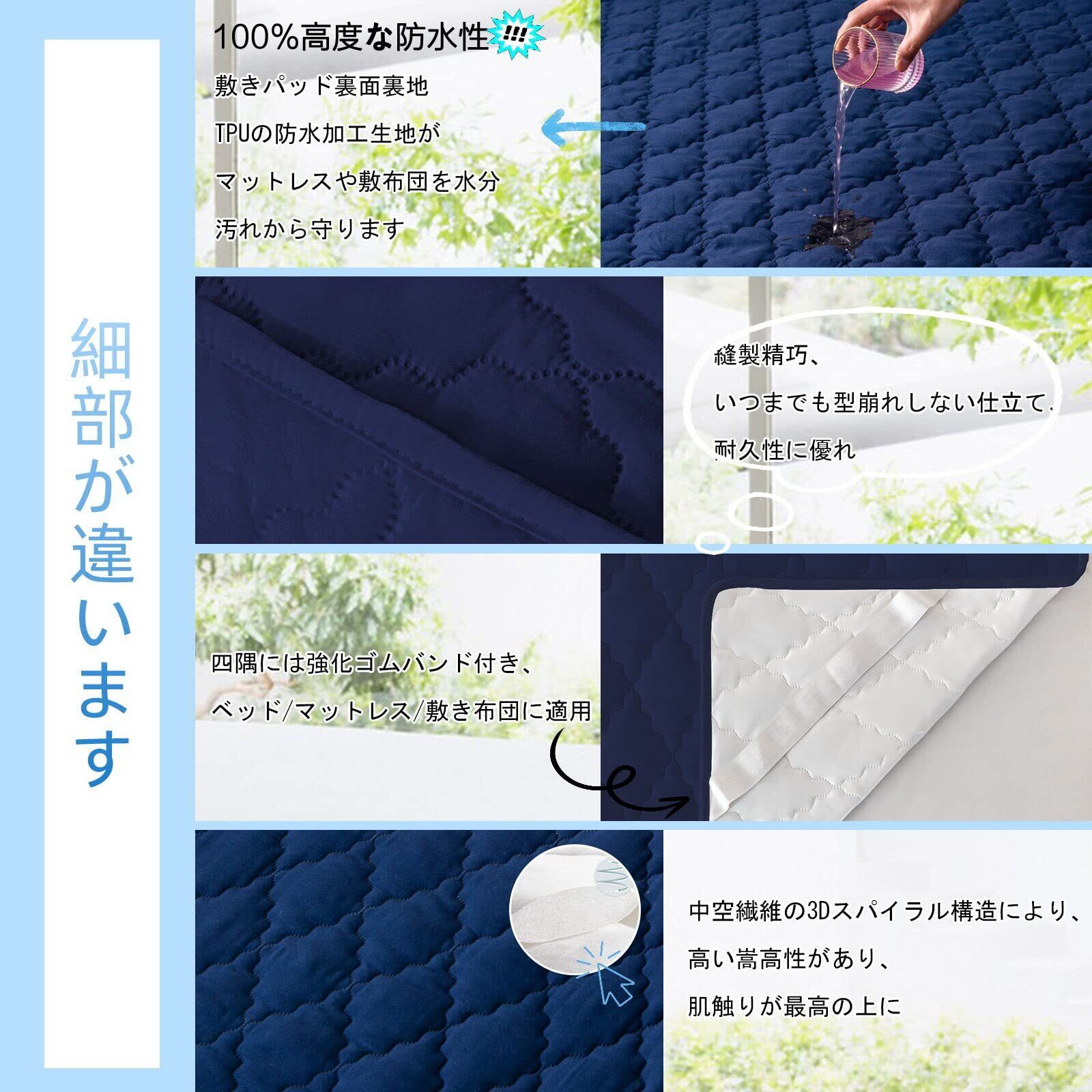 Mafudoxi 防水 敷きパッド セミダブル 防水パッド ベッドパッド 敷パッド マットレスパッド ベッドシーツ ベッドマット 敷きカバー マットレスカバー マットレス 抗菌・防臭・防ダニ 通気性 吸汗 速乾 毛玉なし 洗える 四隅強化ゴムバンド付き オールシーズンで使える (セミダブル・120×200cm・ネイビー)