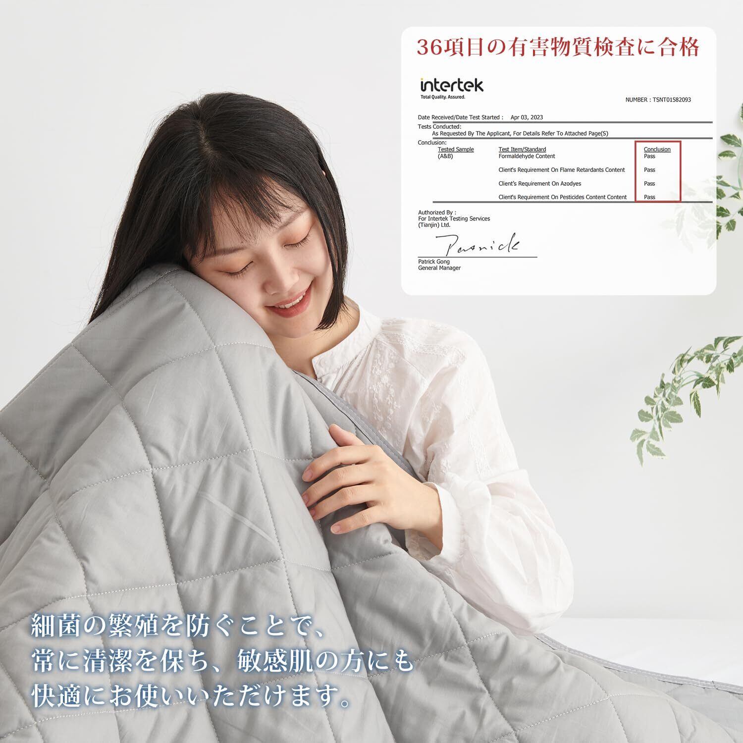 <丸洗いok! いつも清潔に>:毎日使う寝具だから、やっぱり汚れは避けられません。ご自宅で気軽に洗濯できます。厚生労働省が定める基準値を下回る、抗菌・防臭・防ダニ加工・低アレルゲンを実現しました。お肌がデリケートの方やお子様にも安心使用してください。いつも清潔にご使用いただけます。