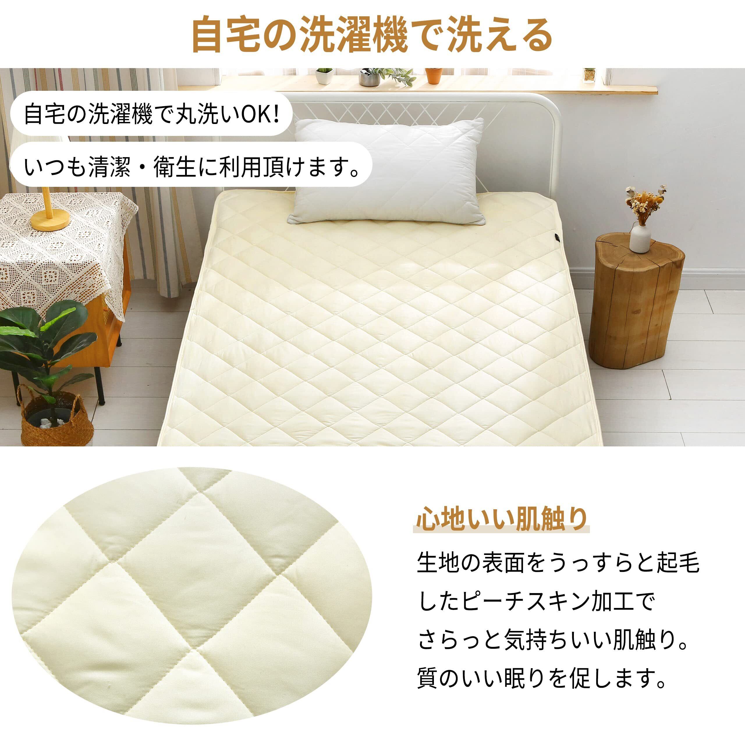 【寝心地アップ】クッション性に優れた中綿を充填して、ふんわりよい寝心地を実現しました。普通より厚くて、柔らかさと反発性を兼ね備えたベッドパッドです。オールシーズンずっと心地よくお休みいただける品質にもこだわりました。