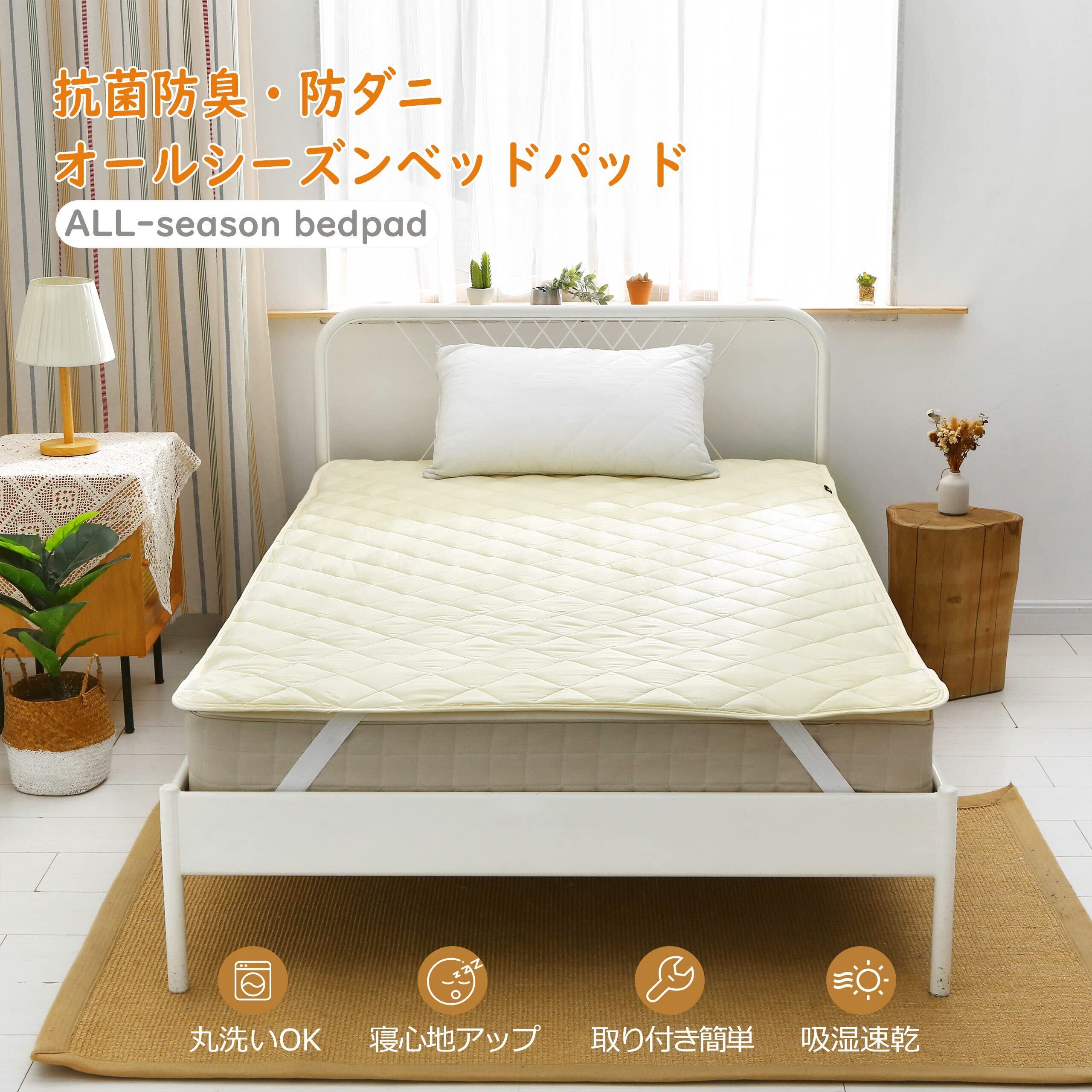 ベッドパッド TEIJIN(帝人)マイティトップⅡ中綿使用 抗菌・防臭・防ダニ加工 洗える 四隅強化ゴムバンド付き ふんわり 吸湿速乾 ホテル仕様 オールシーズン マットレスパッド ベッドマット ベージュ セミダブル