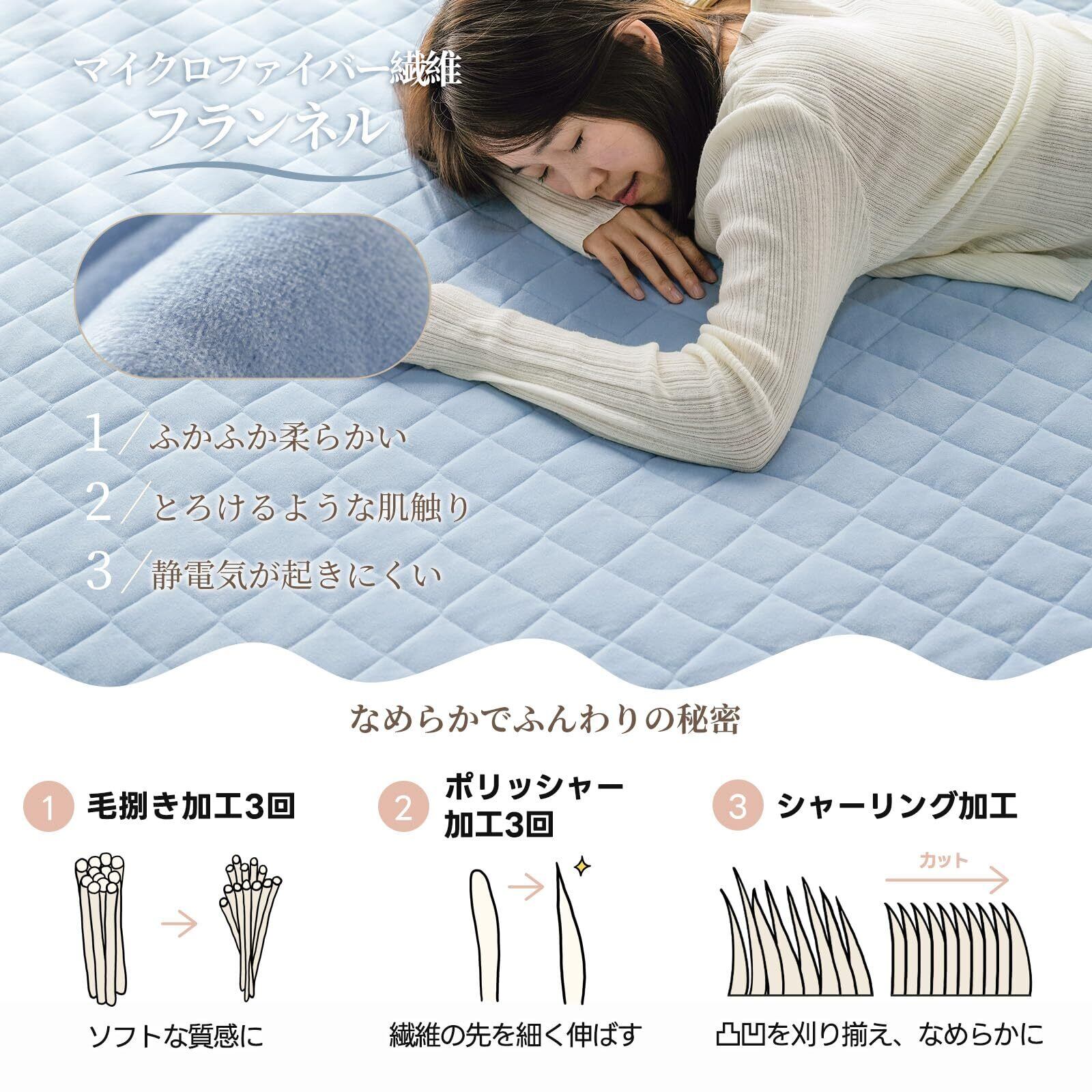 【オールシーズン快適なベッドパッド】フランネル面は寒い時期や急な温度変化があっても温かくて眠れます。レーヨン混合パイル面は汗ばむ真夏にも寝汗をしっかり吸収・発散できて蒸れなくサラサラと快適です。両面いずれも通気性に優れ、静電気が起きにいので通年気持ちよく使えます。