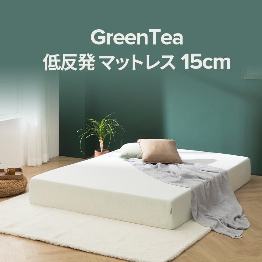 【セット買い】[新生活応援] Zinus (ジヌス) Yelena Classic メタル ベッドフレーム + Green Teaマットレスセットセミダブル 厚さ15cm /防音/パイプ/収納スペース/工具付属/組立簡単/低反発【日本正規品】