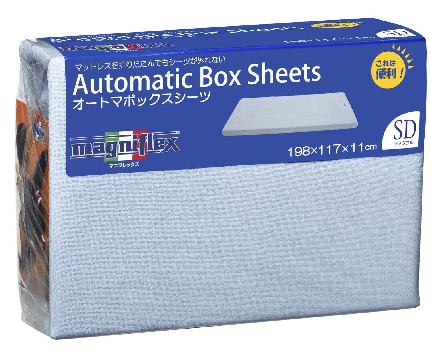 マニフレックス オートマ ボックスシーツ ブルー セミダブル 【三つ折り&マットレス用】【公式直販】 畳んでもシーツが外れない 特製サスペンダー付 ゴムでフィット 簡単着脱