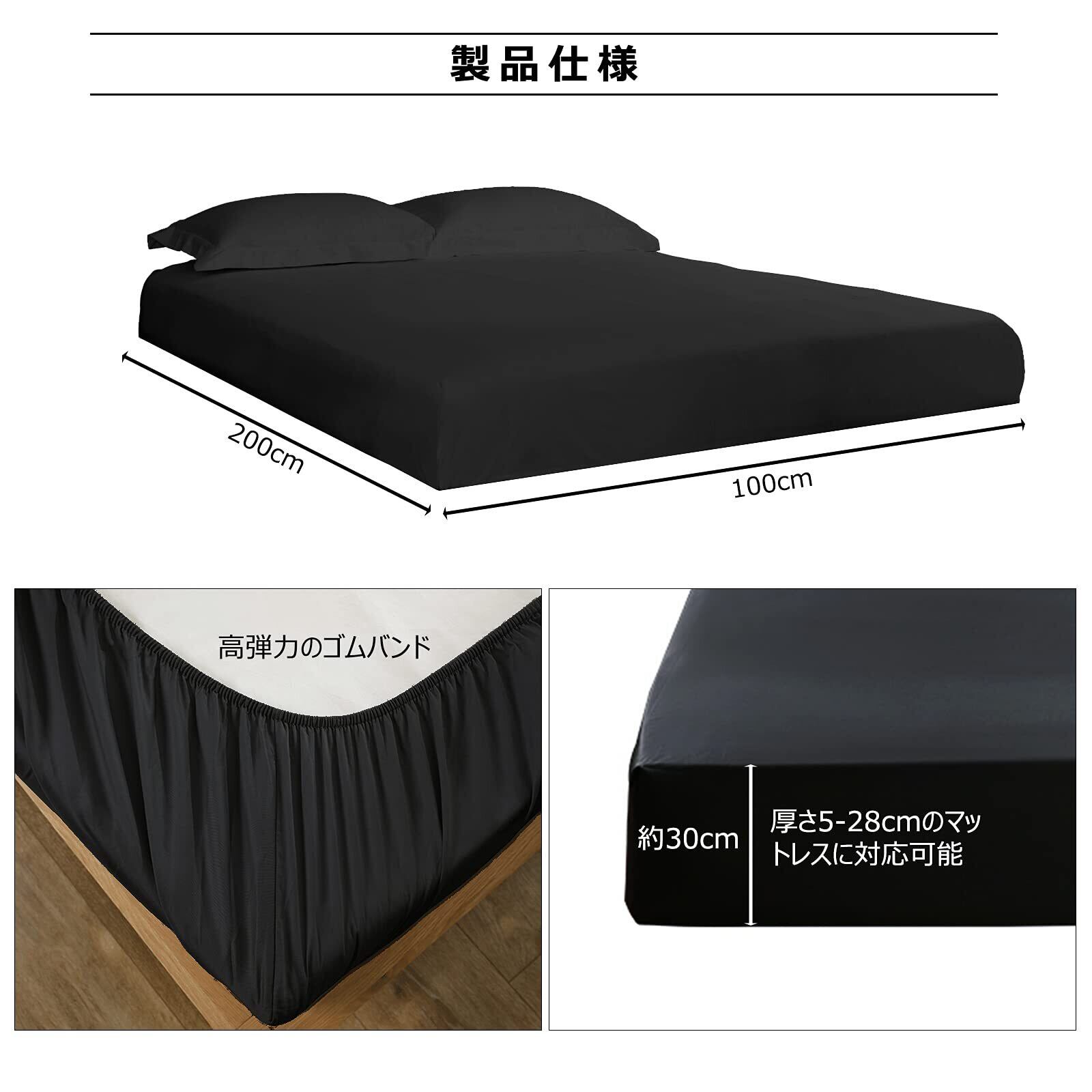 「製品仕様」:サイズ:約100 × 200cm マチ部分:約30cm(厚さ5-28cmのマットレスに対応可能) 材質:綿100% 色:ブラック