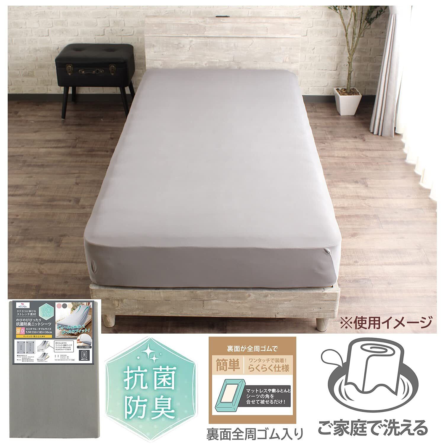 メリーナイト シーツ のびのびぴったり ニットシーツ グレー セミダブル~ダブル共通サイズ マットレス・敷ふとん兼用タイプ 抗菌防臭 ストレッチ素材 シワなくピッタリフィット 洗える 速乾 MNS673095-05