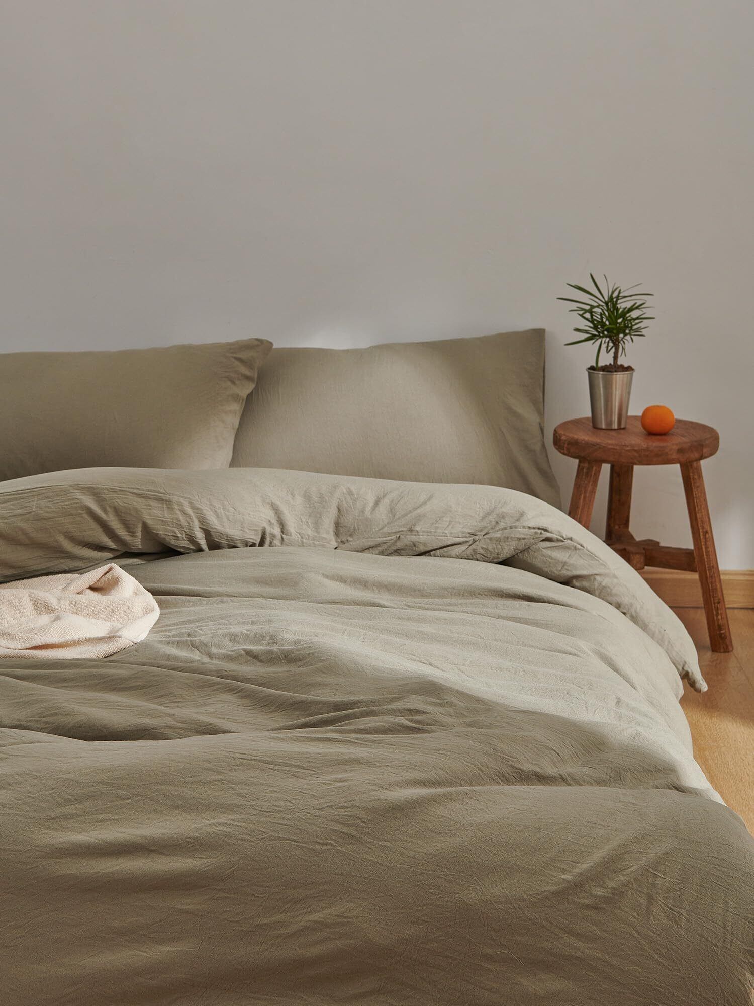 クモリ(Kumori) 寝具カバーセット 布団カバーセット 洗いざらし シワ加工 水洗い やわらか (掛け布団カバー ボックスシーツ 枕カバー)吸水速乾 丸洗いOK 肌に優しい 洗える 無地 シンプル オールシーズン(ダブル・4点セット グリーン)