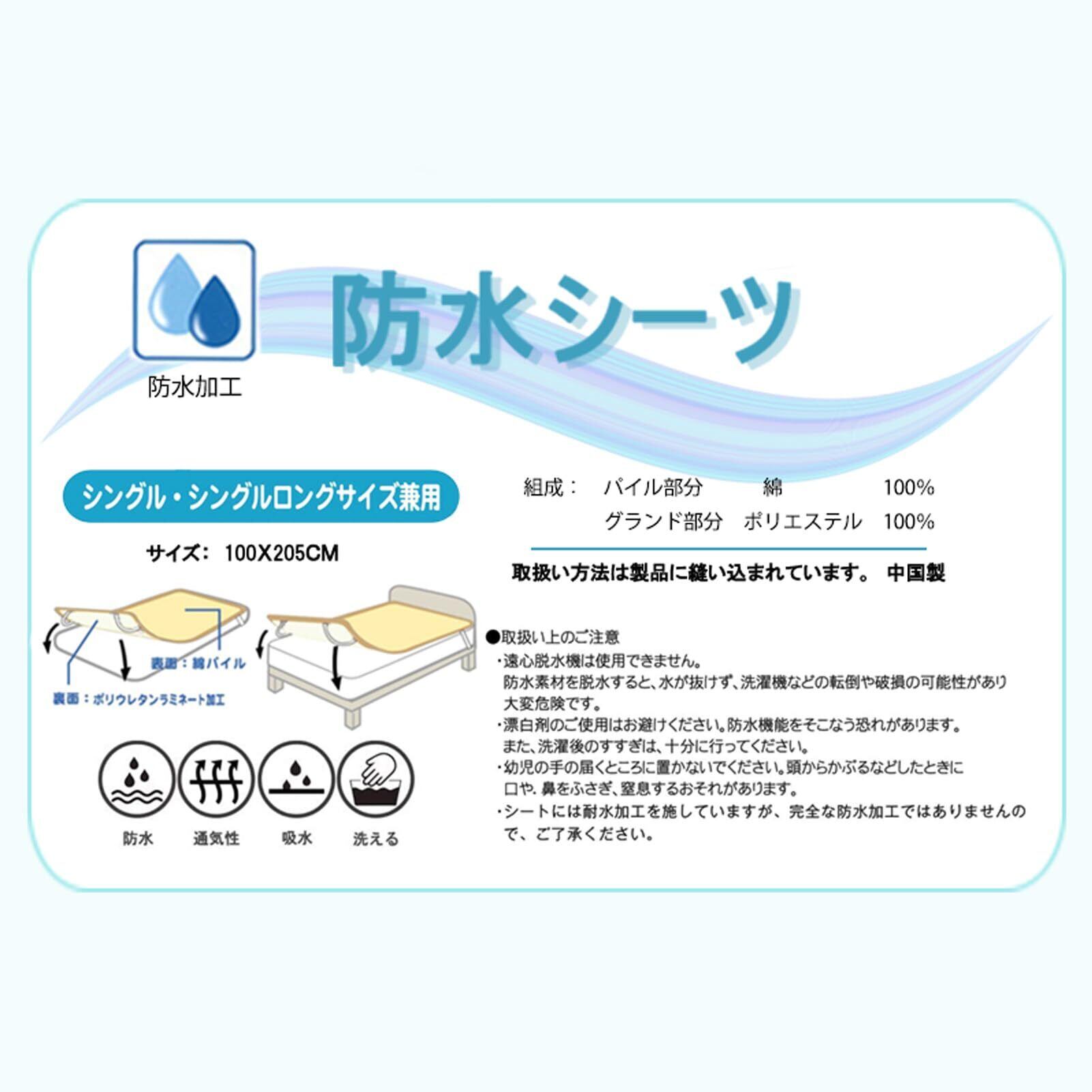 防水敷きパット 防水 おねしょシーツ 介護用シーツ 吸収速乾 四隅ゴム付 シングル 強力防水 通気 速乾 洗える 敷き布団/マットレス対応 洗替えに便利 100x205cm ベージュ