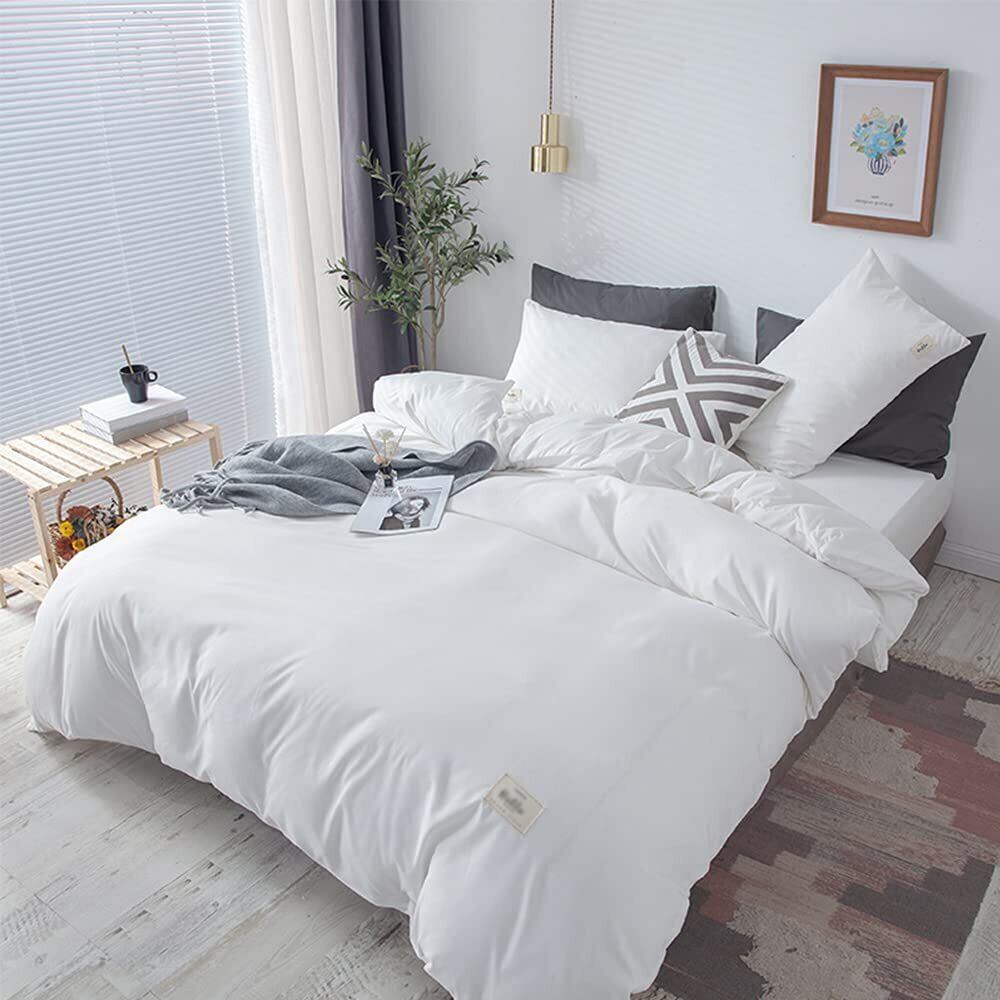 【Amazon.co.jp 限定】 布団カバー 綿 100% セミダブル 4点セット 寝具カバーセット 洋式・和式兼用 無地 掛け布団カバー ボックスシーツ 枕カバー ベッド用 布団用 高密度生地 布団カバーセット 洗い替え速乾タイプ 防ダニ (セミダブル・ホワイト)