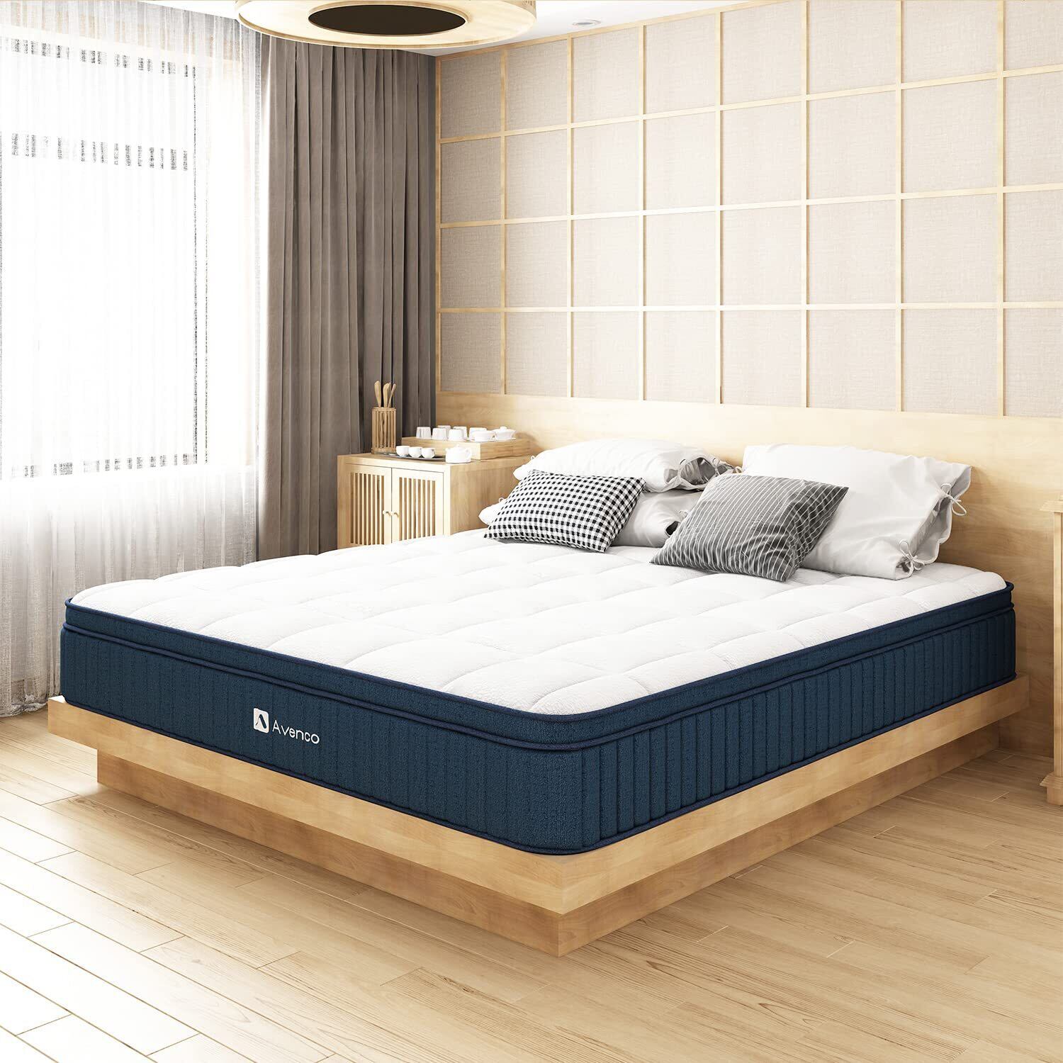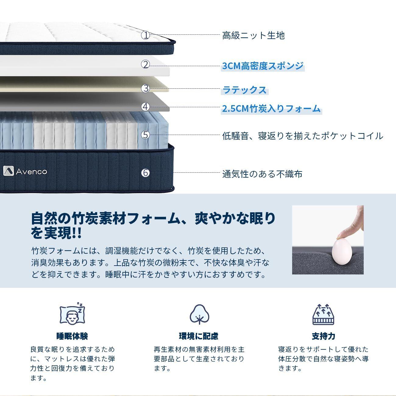 Avenco マットレス セミダブル 高反発マットレス 超厚24cm ベッドマットレス 体圧分散 ポケットコイルマットレス 竹炭メモリーフォーム 消臭 9ゾーン構造 セミダブルベッド 高密度コイル589個 湿度調整 通気性よく 並行配列 120*195*24cm ホワイトとダークブル