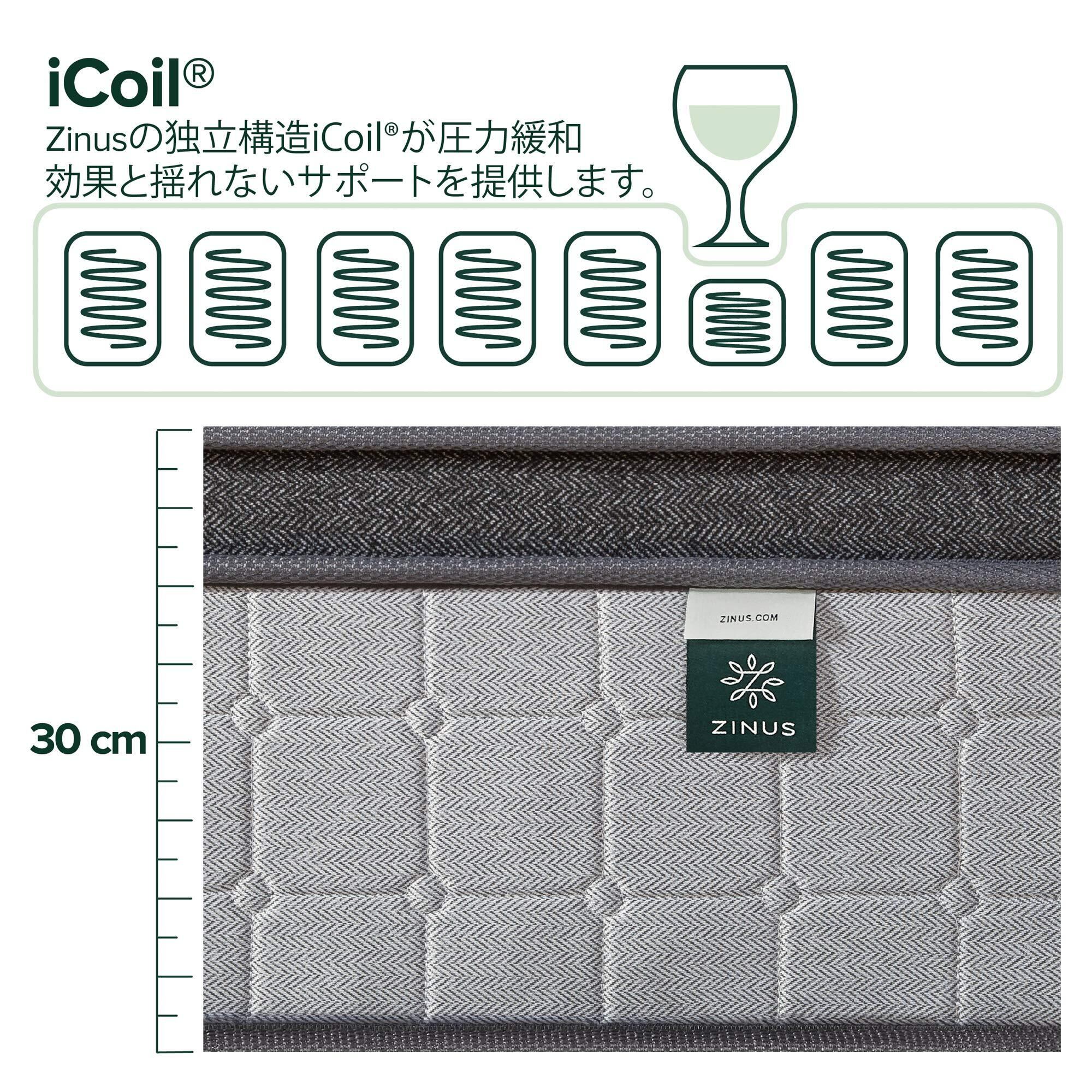 ZINUS ポケットコイル マットレス セミダブル 厚さ 30cm Euro Box Top コイル数570個 抗菌 防臭 通気性 体圧分散 高密度フォーム 硬め ユーロトップ 高耐久 | 圧縮梱包 ベッド ジヌス | 日本正規品 SC-EBT