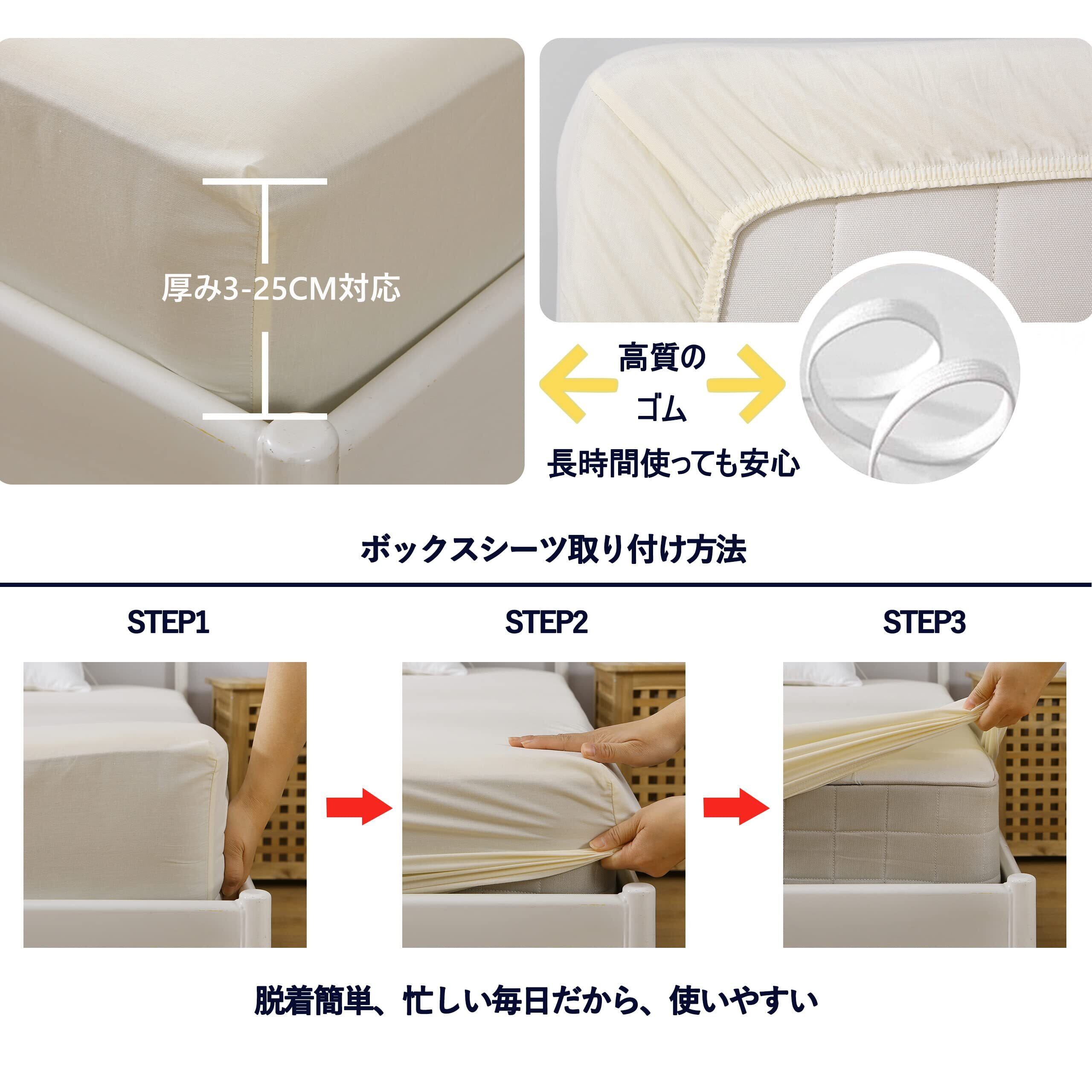 【ボックスタイプ】全周に30cmのズレ防止ゴム付きボックスタイプなので、厚さ3-25cmのマットレスに適用します!ベッド用 / マットレス用 / 敷き布団に、いろいろ使えます。着脱も簡単、寝相が悪くても大丈夫です。