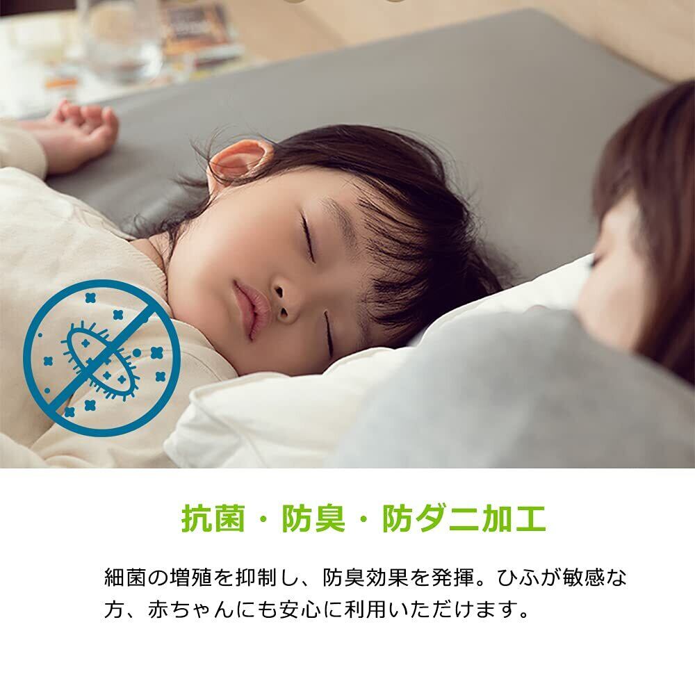 <肌にやさしい>活性染色工芸を施すので、シミがなく、色褪せる心配も必要ない。一切有害の成分を含めなく体にやさしい。防臭、防ダニ、抗菌、ホルムアルデヒド無し。厚生労働省が定める基準値を下回る、低アレルゲンを実現した。肌が敏感な方、赤ちゃんにも適用。