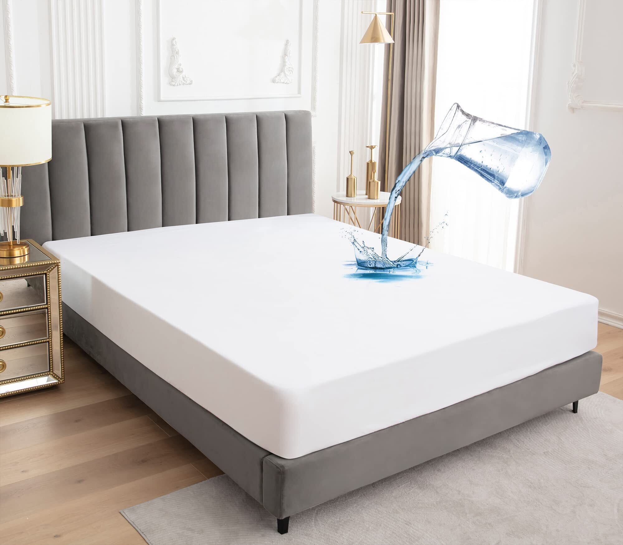 トラブル解消:ボックスシーツ100%防水のため素材効果的に防止するおねしょ、子犬の事故、体の不自由な高齢者、不眠症や寝汗のある中年など、さまざまな場面で活躍する防水ボックスシーツです。マットレスカバーは、マットレスを損傷から保護します。