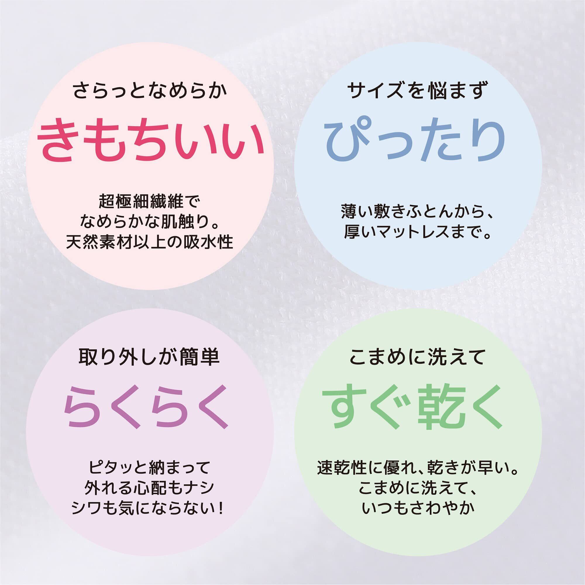 敷きふとんからベッドマットレスまであらゆる敷き寝具に対応。さらに、ストレッチ素材なのでシングルからセミダブルまでの2サイズに対応。装着がとっても簡単!豊富なカラーバリエーションであらゆる寝具やお部屋のイメージに合わせられます。