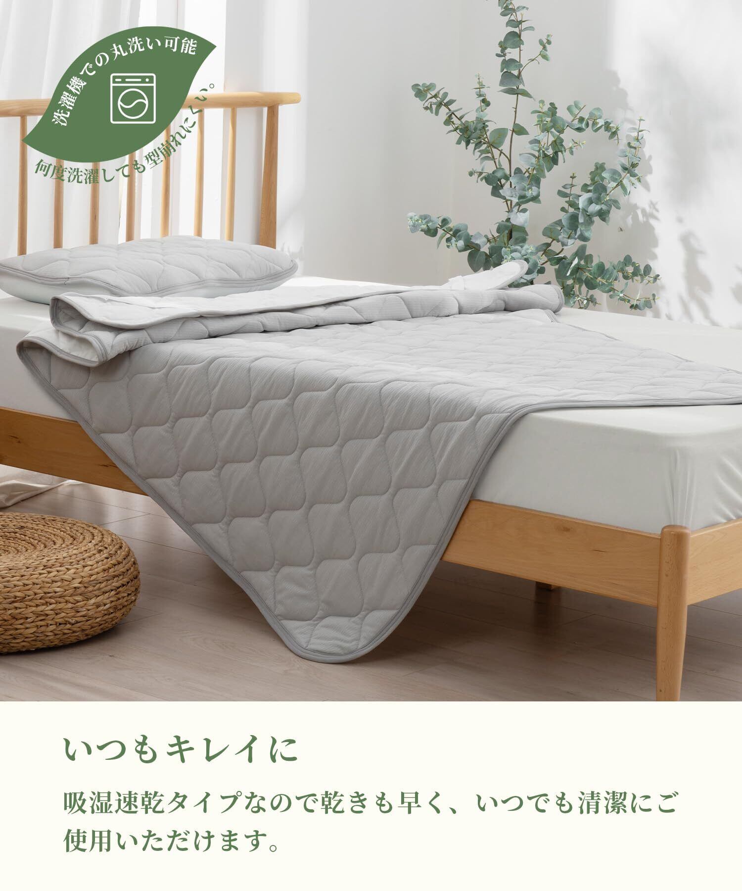 【肌にやさしい】優れた吸水性と通気性を備える素材で織り上げた敷パッドだから、夏にもさっぱり。たっぷり中綿を充填し、ふんわりふっくらな感触をお楽しみいただけます。寒い時期にも温もりを実感していただけます。