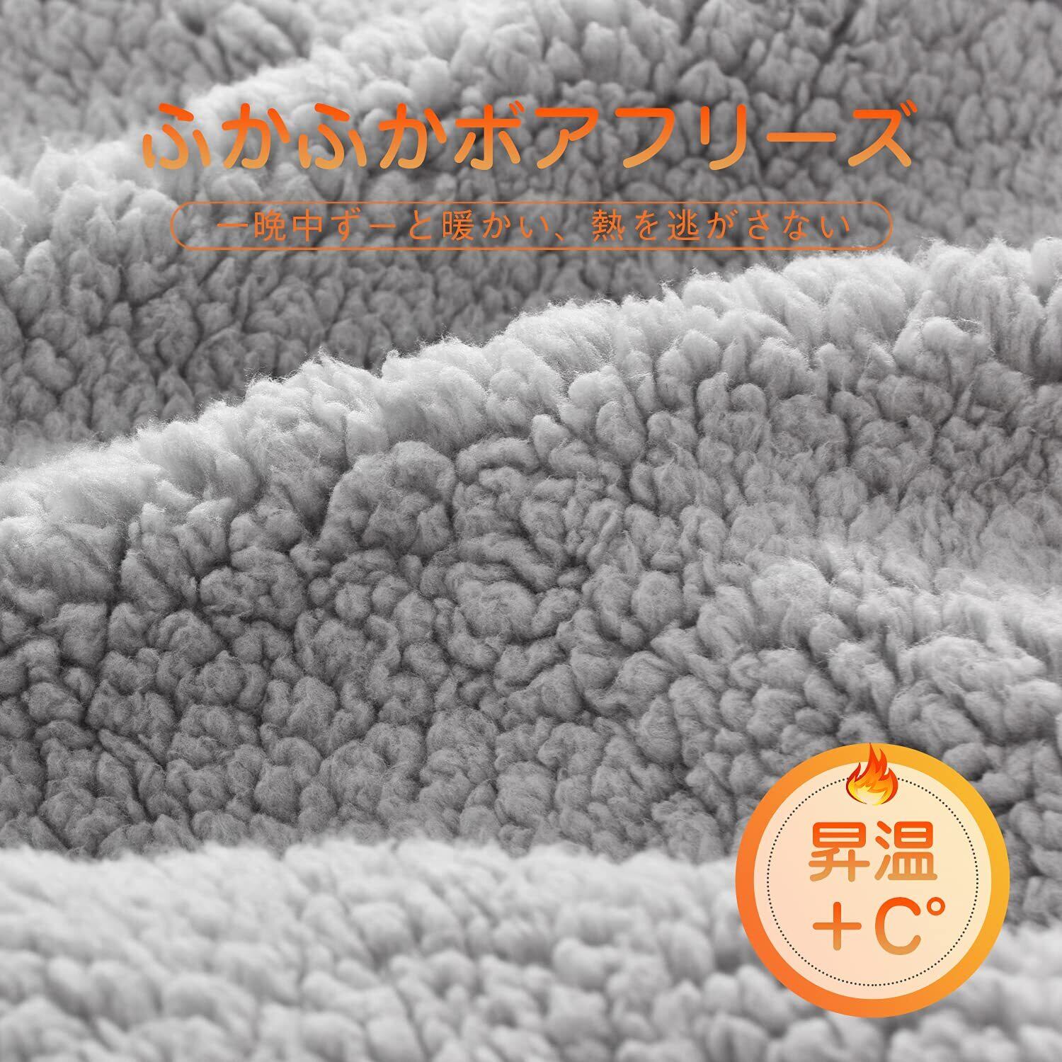 【暖かな三層構造】表面ふわふわなボアフリース素材で、触ると柔らかくて暖かい。中わた蓄熱素材を使用し、熱を逃がさない。吸湿・発熱性が抜群、寝ている間に身体から出る湿気や汗を吸収し、発熱する素材を使用。-5℃~0℃までの気温でも気持ちよく眠れる。