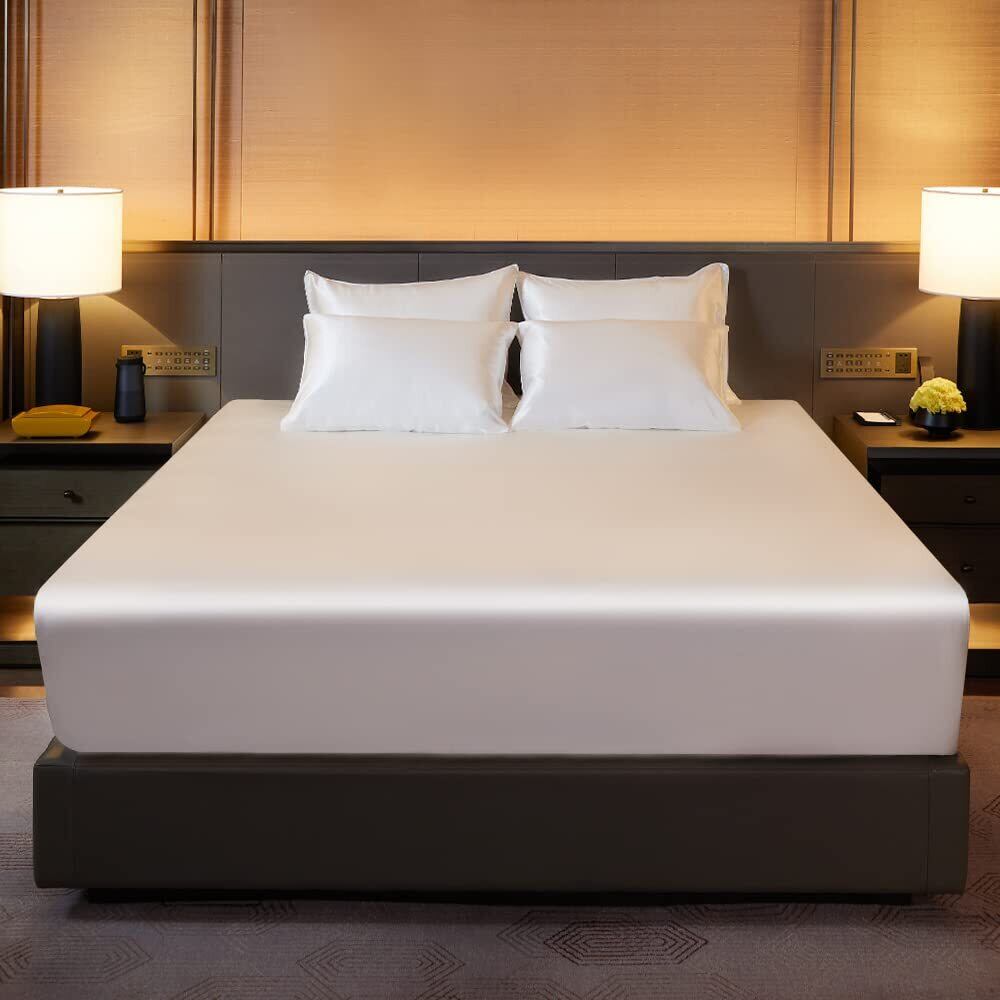 【ふんわり心地よい寝心地の秘密】人生の3分の1の時間を占める睡眠は、健康で豊かに暮らすために必要不可欠なもの。 質の良い睡眠をとることで、疲労 回復や生活習慣病の予防効果が期待できます。 Utukkyボックスシーツは贅沢な6Aシルク100%を使用、真珠のような輝きが視覚的な美しさと優雅な雰囲気を演出。人間の肌と同じ天然素材で柔らかな肌触りを実現、ストレスなくおやすみいただけます。1日の疲れを上質なシーツで癒しましょう。