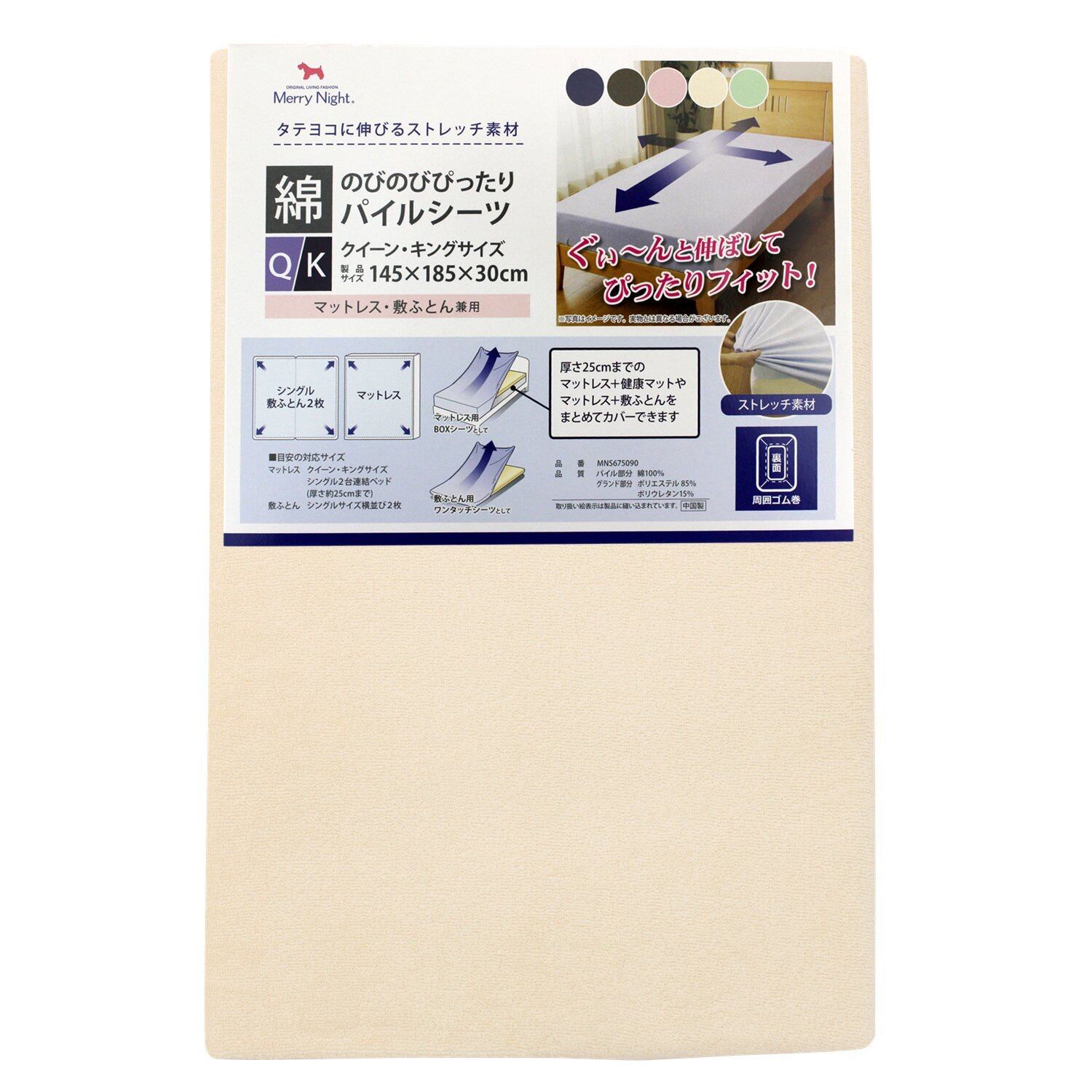 メリーナイト シーツ のびのびぴったり パイルシーツ アイボリー クイーン~キング共通サイズ マットレス・敷ふとん兼用タイプ ストレッチ素材 シワなくピッタリフィット ふんわりやさしい肌触り 洗える MNS675090-07
