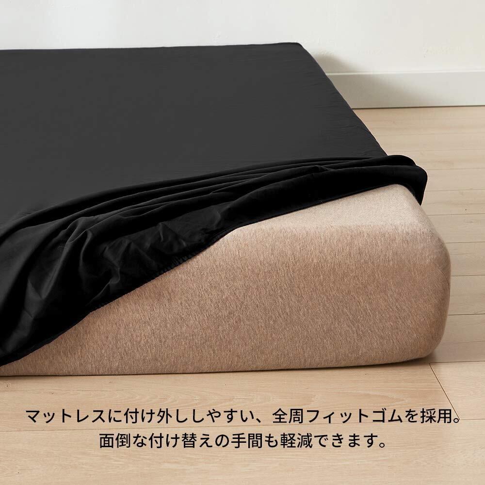 ボックスシーツ ワイドキング マチ35cm 200cm幅 ブラック ベッドシーツ 綿100 マットレスカバー 全周ゴム 着脱簡単 BOXシーツ コットン 肌触り 洗える 抗菌防臭 防ダニ 黑