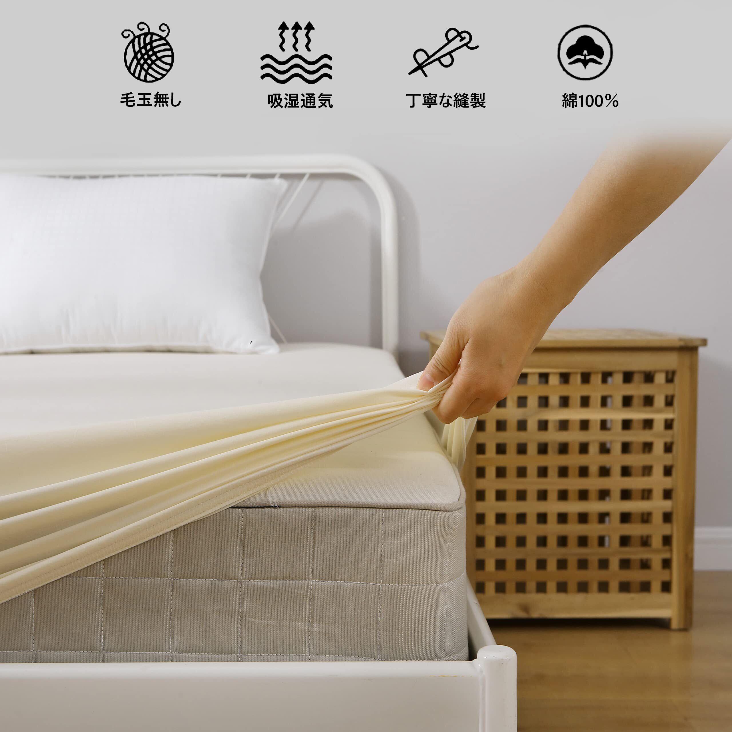 ボックスシーツ 綿100% シーツ 肌に優しい 丸洗いOK オールシーズン 全週ゴム付き 着脱簡単 毛玉なし マットレスカバー ベッドシーツ ベッドカバー 速乾 マットレス・敷ふとん兼用 アイボリー セミダブル・120x200x25cm