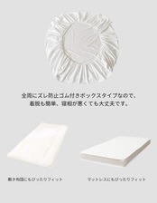 【ボックスタイプ】:ベッドのマットレス用のカバーをベッドシーツと呼んでいます。 フィットシーツ・ボックスシーツとも呼ばれる。全周にズレ防止ゴム付きボックスタイプなので、 マットレス用/ 敷き布団に、いろいろ使えます。着脱も簡単、寝相が悪くても大丈夫です。
