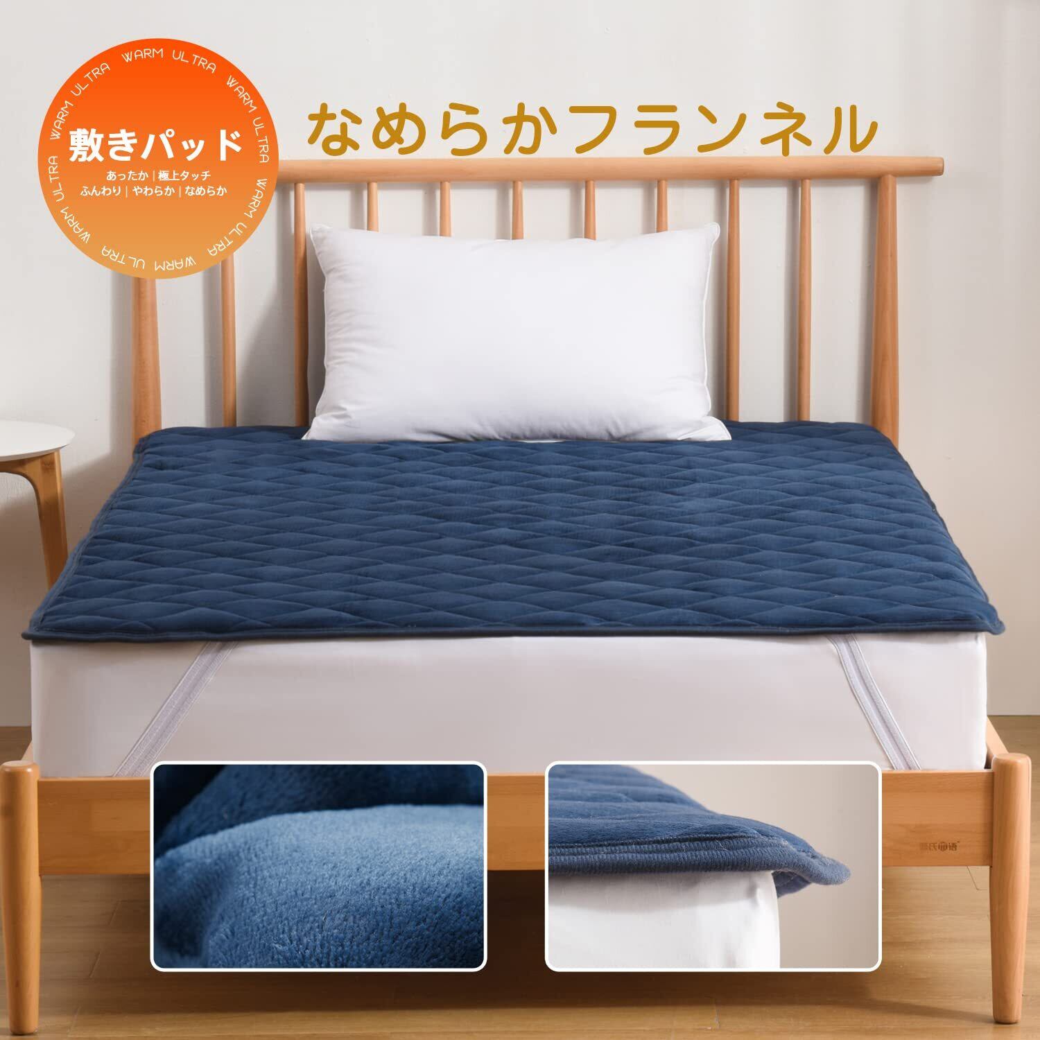 <アップグレードした素材>:毛羽部分は触れると暖かい、極上タッチのフランネルを敷きパッドにしました。フランネルは、きめ細かい毛並みとふんわりした触り心地が魅力です。とってもやわらかくて暖かいため、寒い時期に欠かせない生地の一つです。充填にはクッション性と保温性に優れた中綿を使用し、よい寝心地を実現しました。