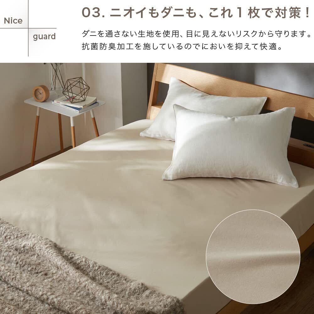 【とことん清潔!抗菌防臭加工&ダニ通過ゼロ生地使用】長年蓄積された寝汗や尿などによる汚れは不快なニオイの元に。1日の終わりに毎日眠るベッドだからこそ、気持ちよく眠りにつきたいものですね。NICE GUARD+(ナイスガードプラス)サイドまでしっかり防水シーツは抗菌防臭加工を施しているので、イヤなニオイを抑制し、しっかり防水することで、ニオイや汚れのしみつきを防ぎます。ダニを通さない生地を使用しているので、見えないリスクからマットレスを守ります。シーツをこまめに洗いたくない方にもおすすめ。