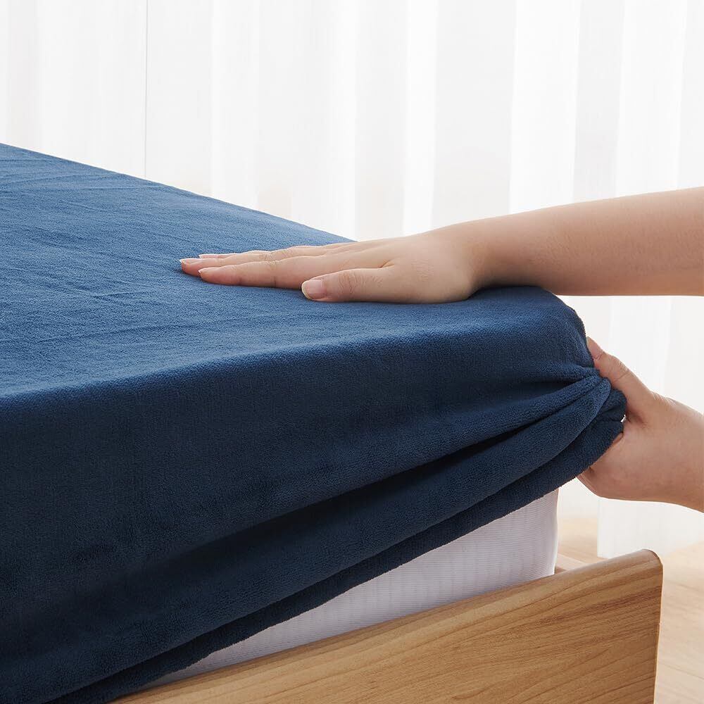 ボックスシーツ あったか 冬用 極細マイクロファイバー 静電気防止 なめらか 敷き毛布 寝汗吸収 通気速乾 洗える 敷き布団カバー ズレ防止 暖かい 柔らかい ベッドシーツ (キング・180X200cm, ネイビー)