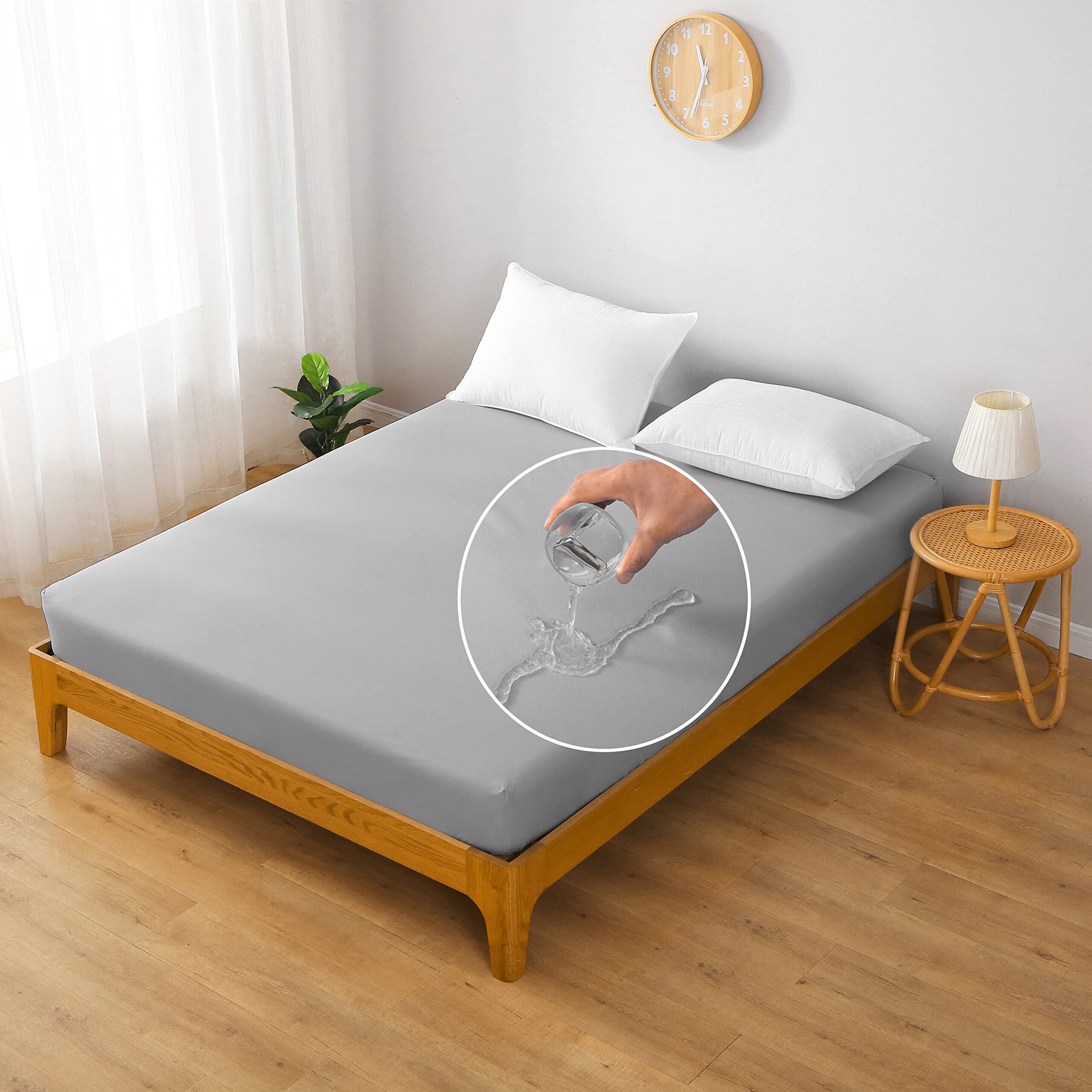 防水シーツ ボックスシーツ 侧面完全防水 シングル セミダブル ダブル クイーン通気性 肌触り良い 寝汗 マチ30cm 抗菌 防臭 防ダニ ベビー ベット毛玉なし 快適 丸洗い可能 防水ベッドシーツ 敷きパット マットレスカバー マットレスプロテクター (グレー, スモールシングル・80X200X30cm・完全防水)