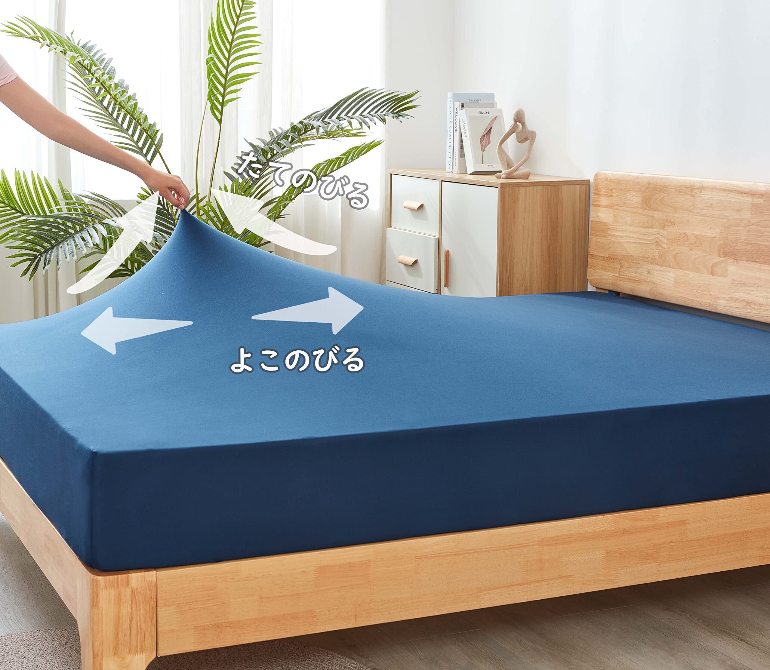 MISOLER ボックスシーツ ベッドシーツ 毛玉なし ベッドカバー マットレス・敷ふとん兼用 のびのびぴったり 通気性 夏・冬オールシーズン吸水速乾 しわにならない 着脱簡単 抗菌防臭 (ダブル~クイーン用・140~160cm×180~210cm ネイビー)