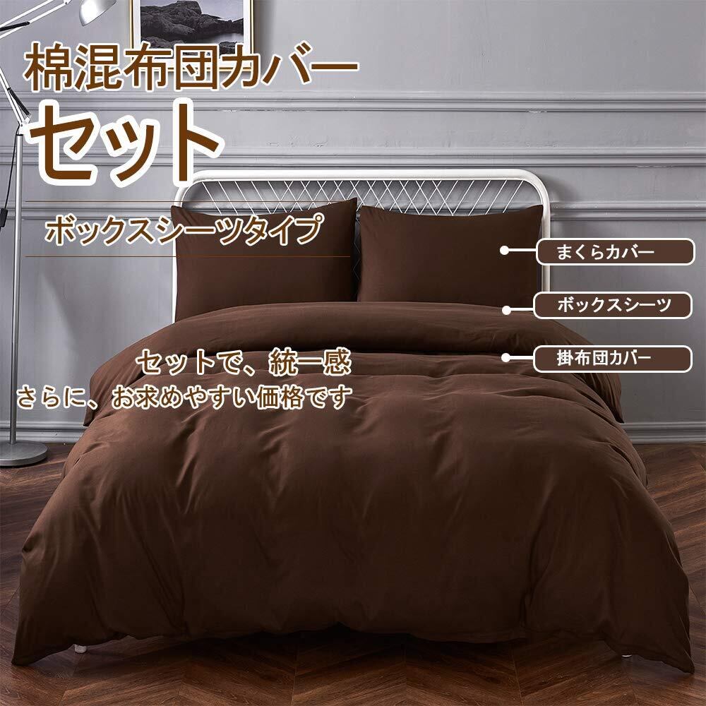 布団カバー キング 4点セット寝具カバーセット 綿混 無地 掛け布団カバー ボックスシーツ 枕カバー 洗い替え 速乾 防ダニ(ブラウン)