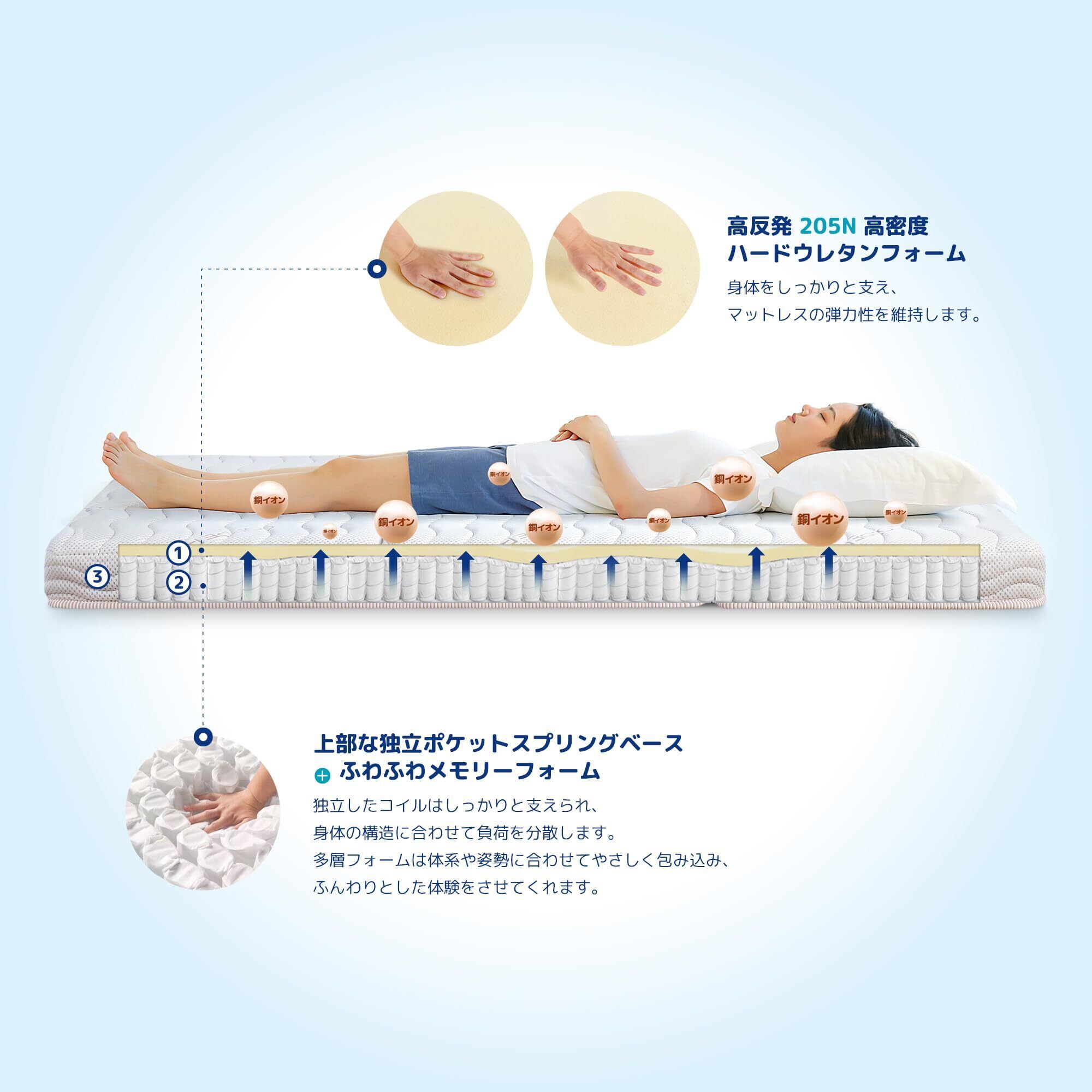 銅イオンはアレルゲンやニオイの発生を減らすことができます。 マットレスを清潔で乾燥した状態に保ち、快適さと睡眠の質を向上させます。