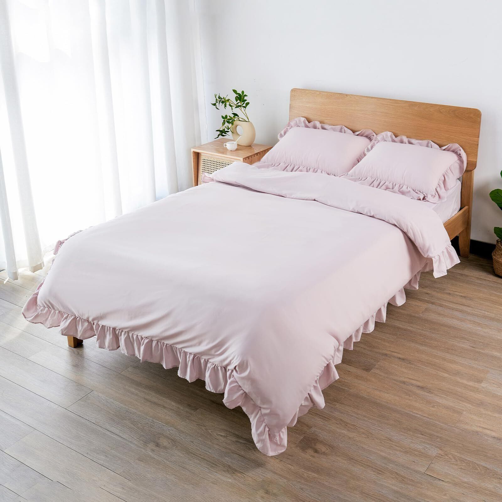 【オシャレな姫系寝具カバーセット】 掛け布団カバーと枕カバーに程よい大人可愛いフリルが付いています。インテリアに馴染みやすい無地柄でシンプルな北欧風を演出し、明るくて穏やかな色合いで体と心の疲れを癒していただけます。