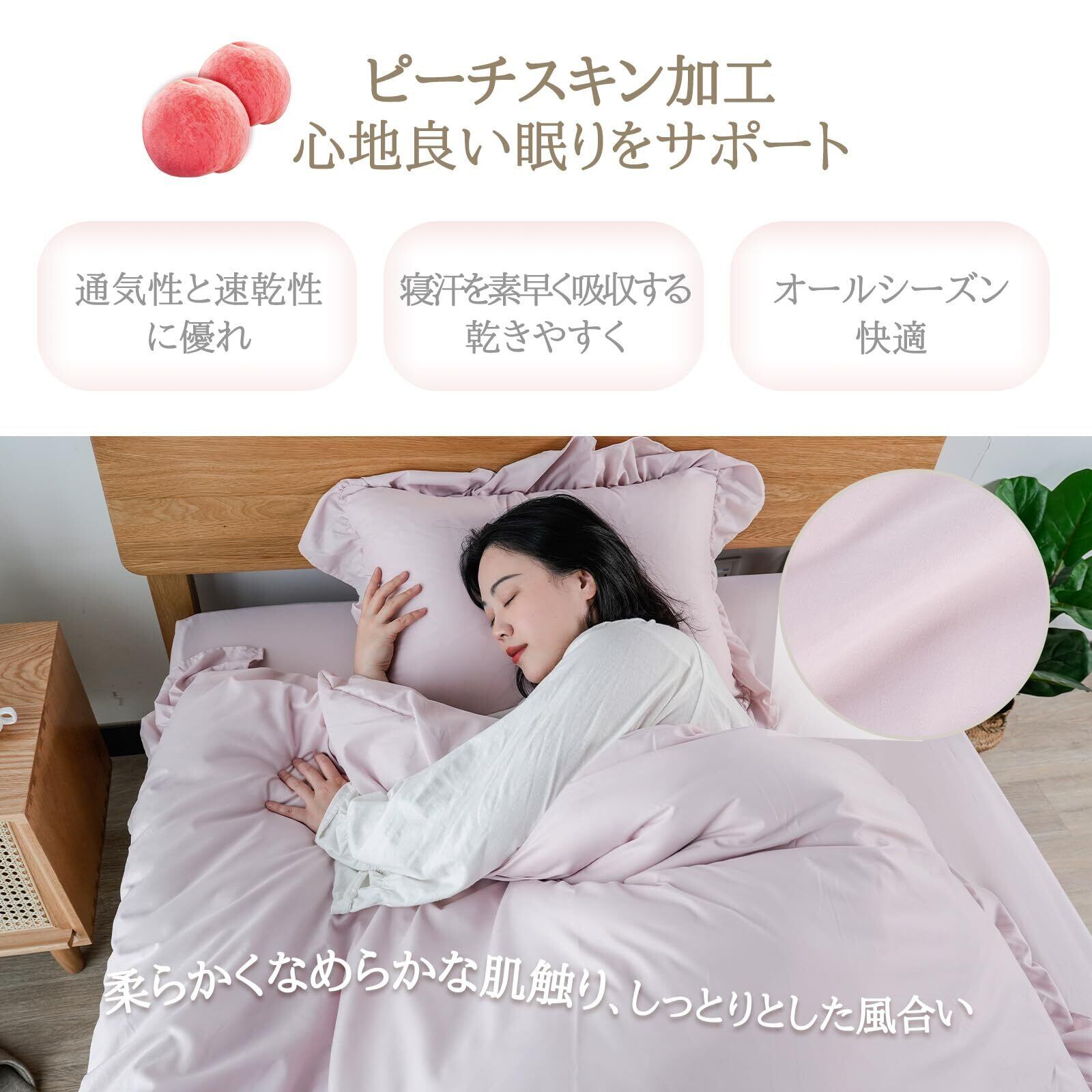 TOMODA LIFE 布団カバー ダブル 4点セット 可愛い フリル付き 枕カバー 掛け布団カバー おしゃれ 姫系 全開ファスナー スナップボタン のびのびボックスシーツ ベッドカバー 敷き布団カバー ピローケース ピーチスキン加工 全周ゴム 寝具カバーセット マットレス・敷布団兼用 北欧 オールシーズン 丸洗いOK ふわもち 無地 ズレ防止 ベットカバー パウダーピンク