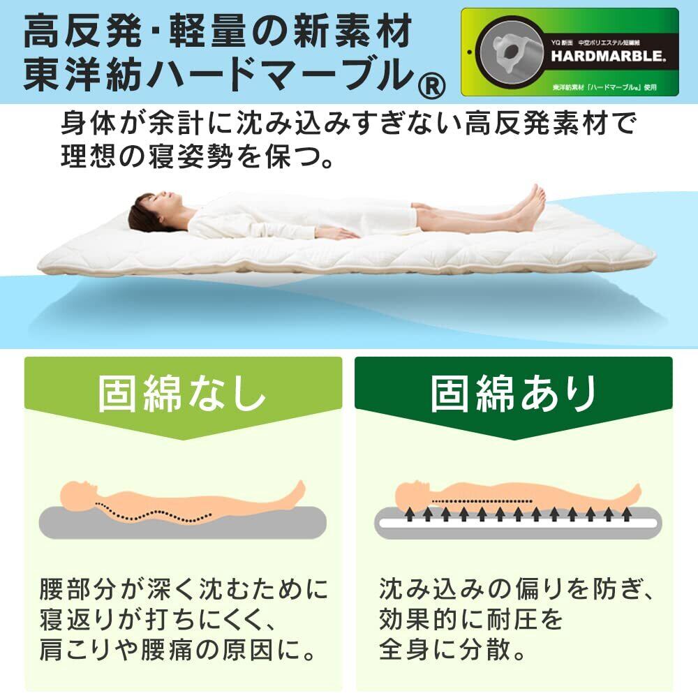 【こだわりの体圧分散に優れた素材を使用】高反発で理想の寝姿勢に身体をバランス良く支えます。固綿入り(ハードマーブル(R))で、バランスのとれた寝姿勢を保つことができ、肩や腰への負担を軽減します。
